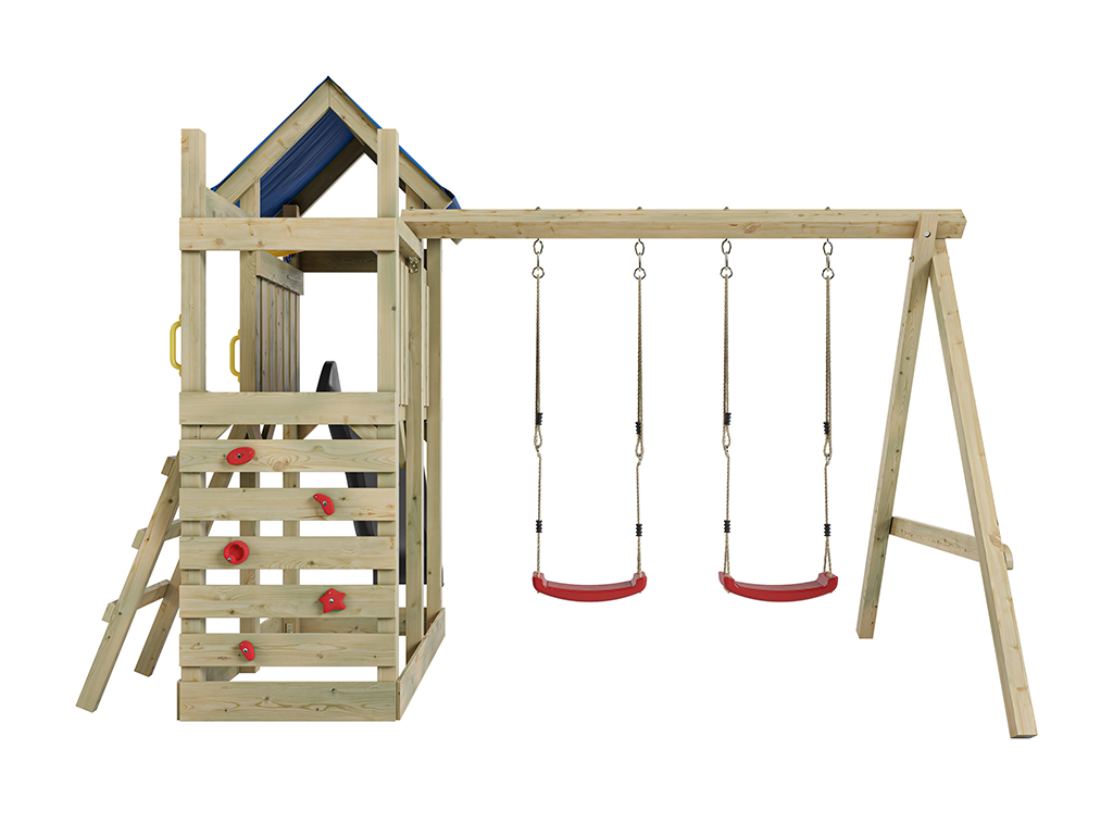 - Inclusief een rode dubbele schommel met een stevige schommelbalk van 9 x 9 cm.