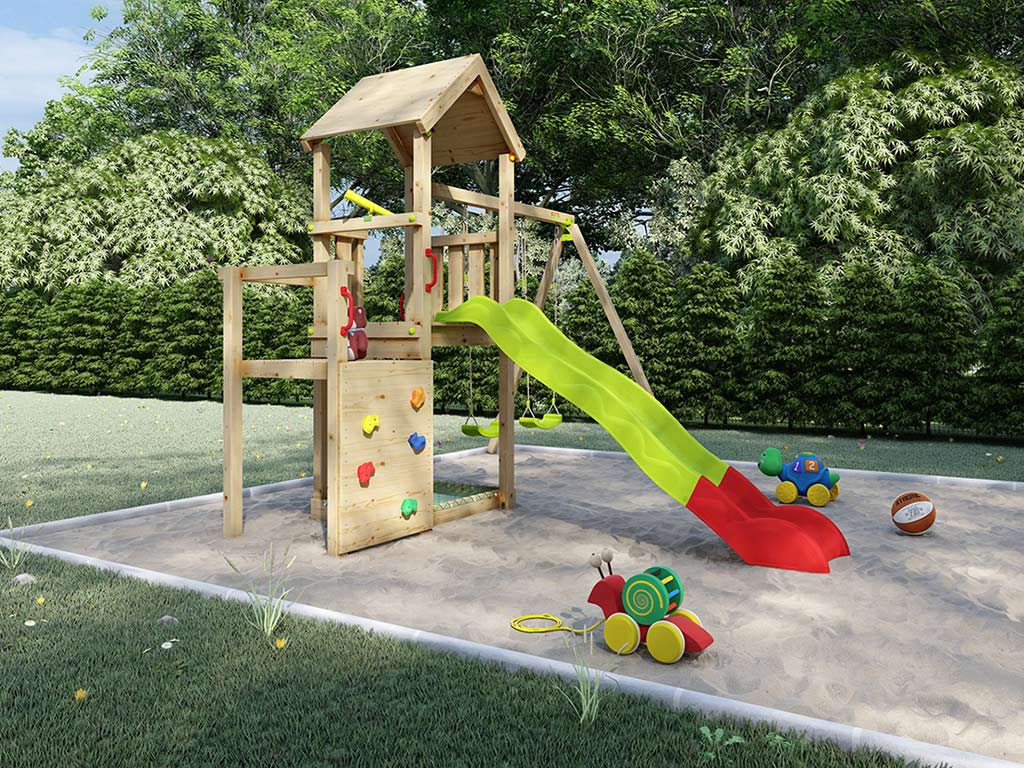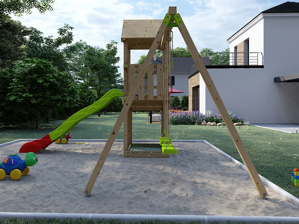 De basisconstructie van de speeltoren bestaat uit 7 x 7 cm dikke palen. - Incl. glijbaan