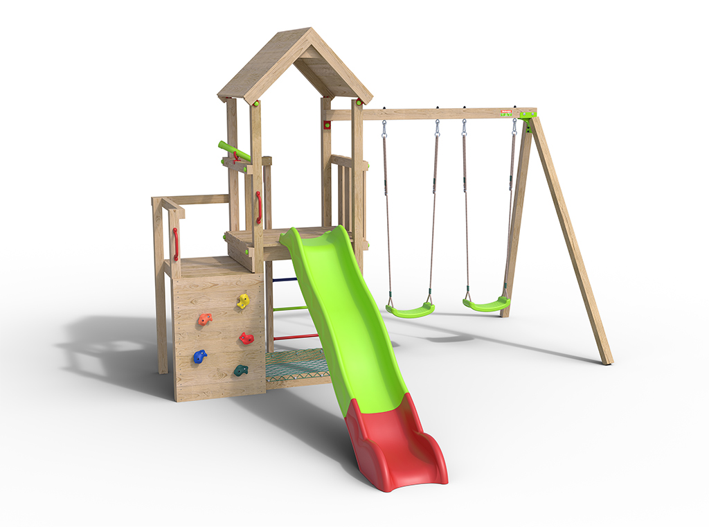 Speeltoren Ultra Xplorer incl. dubbele schommel + glijbaan groen-rood