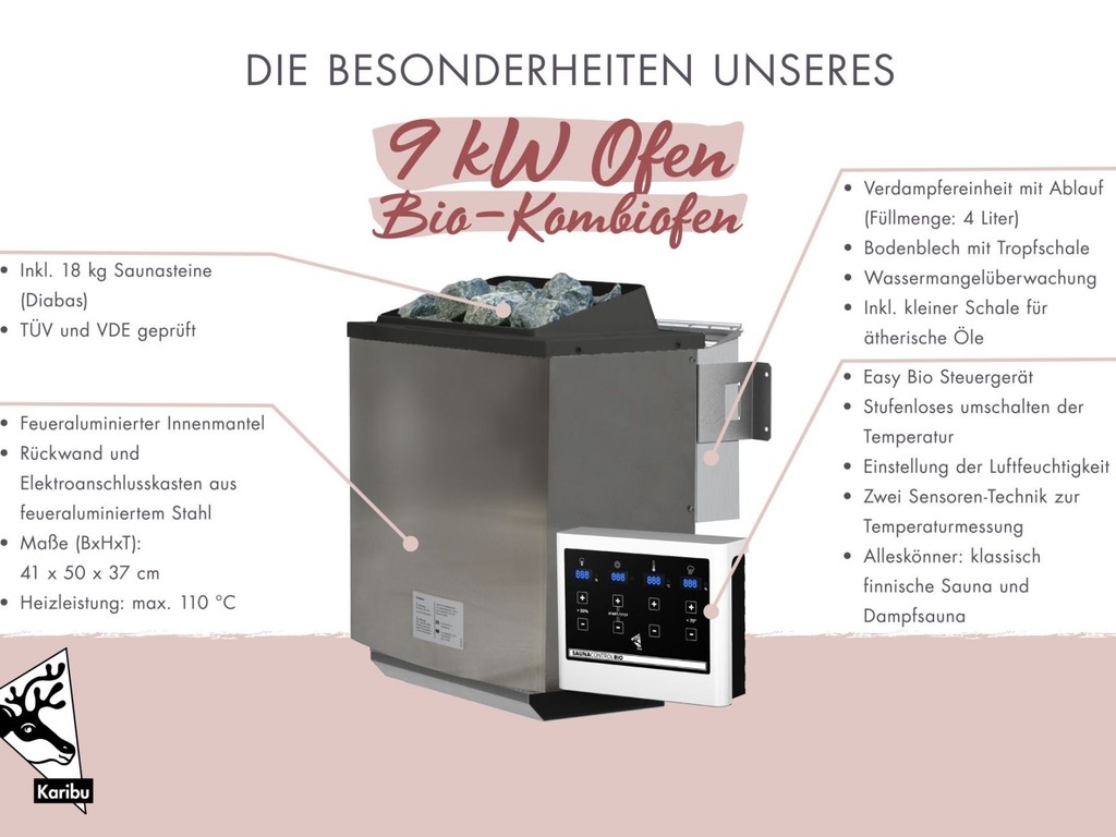 Veiligheidsinstructie: Onze wellnessartikelen (sauna's, saunahuizen, saunavaten, kotas, infraroodcabines, saunakachels, enz.) mogen alleen voor privégebruik worden gebruikt! Saunakachels en bijbehorende besturingselementen mogen alleen worden aangesloten door een lokaal erkende elektricien met een vaste aansluiting op het net. Uitzondering: 230 Volt Plug & Play sauna kachels.