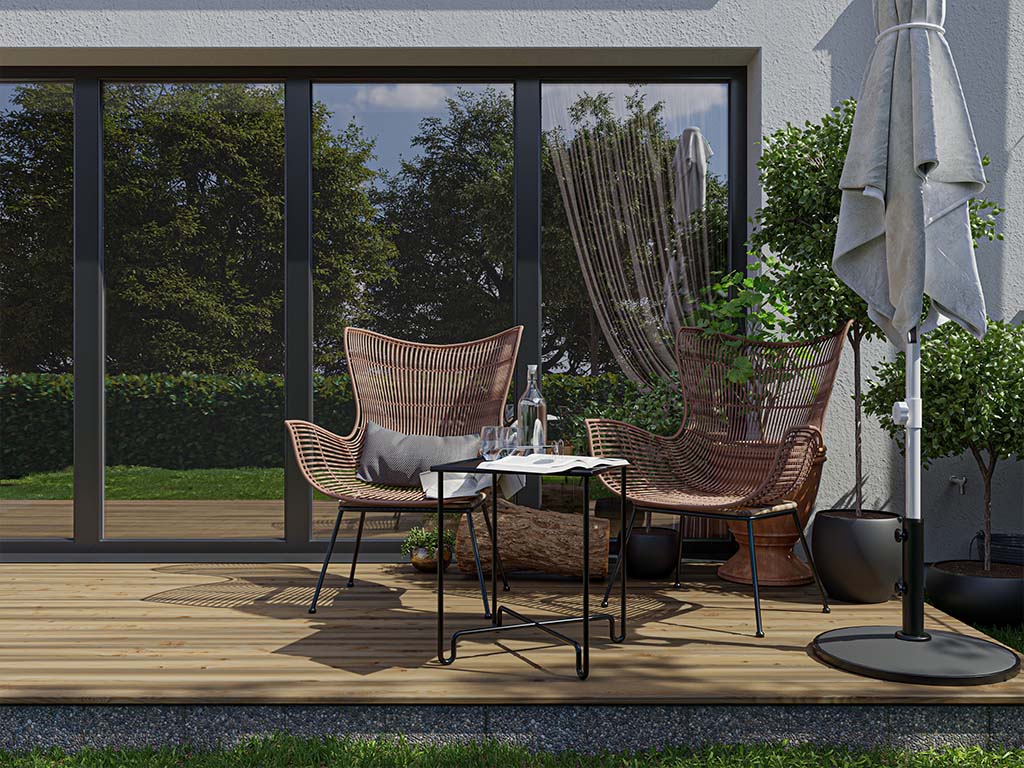 Regelmatige behandeling van UV-ondoorlatende coatings kan de weersgerelateerde vergrijzing van het hout in de loop van de tijd tegengaan en het fraaie karakter van de planken voor lange tijd behouden.