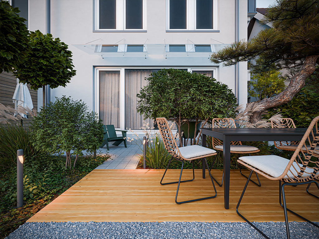 Regelmatige behandeling van UV-ondoorlatende coatings kan de weersgerelateerde vergrijzing van het hout in de loop van de tijd tegengaan en het fraaie karakter van de planken voor lange tijd behouden.