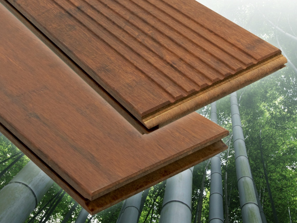 Deze 18 mm dikke terrasplanken worden van bamboe gemaakt. Bamboe in vezelvorm wordt verhit behandeld en onder hoge druk met bindmiddelen tot stabiele planken geperst. Ze hebben, met duurzaamheidklasse 1, een bijzonder robuuste en duurzame kwaliteit. Bamboe-terrasplanken staan bekend om hun lage zwelling en krimp evenals hun bijzondere scheur- en splintervastheid. Het trendy materiaal heeft een voor bamboe typische geelbruine kleuring en gestreepte nerf. Bovendien is bamboe een snel hernieuwbare grondstof – wat het tot een ecologisch alternatief voor gangbare hardhoutsoorten maakt.