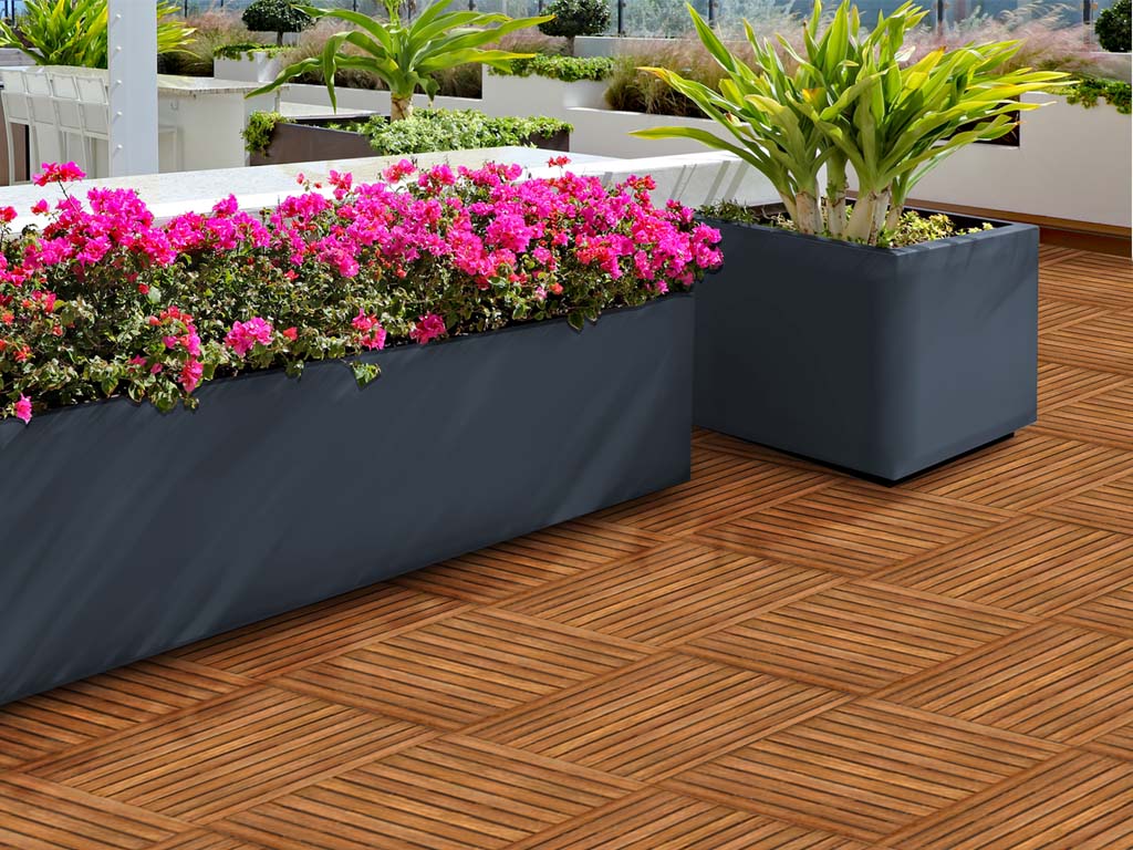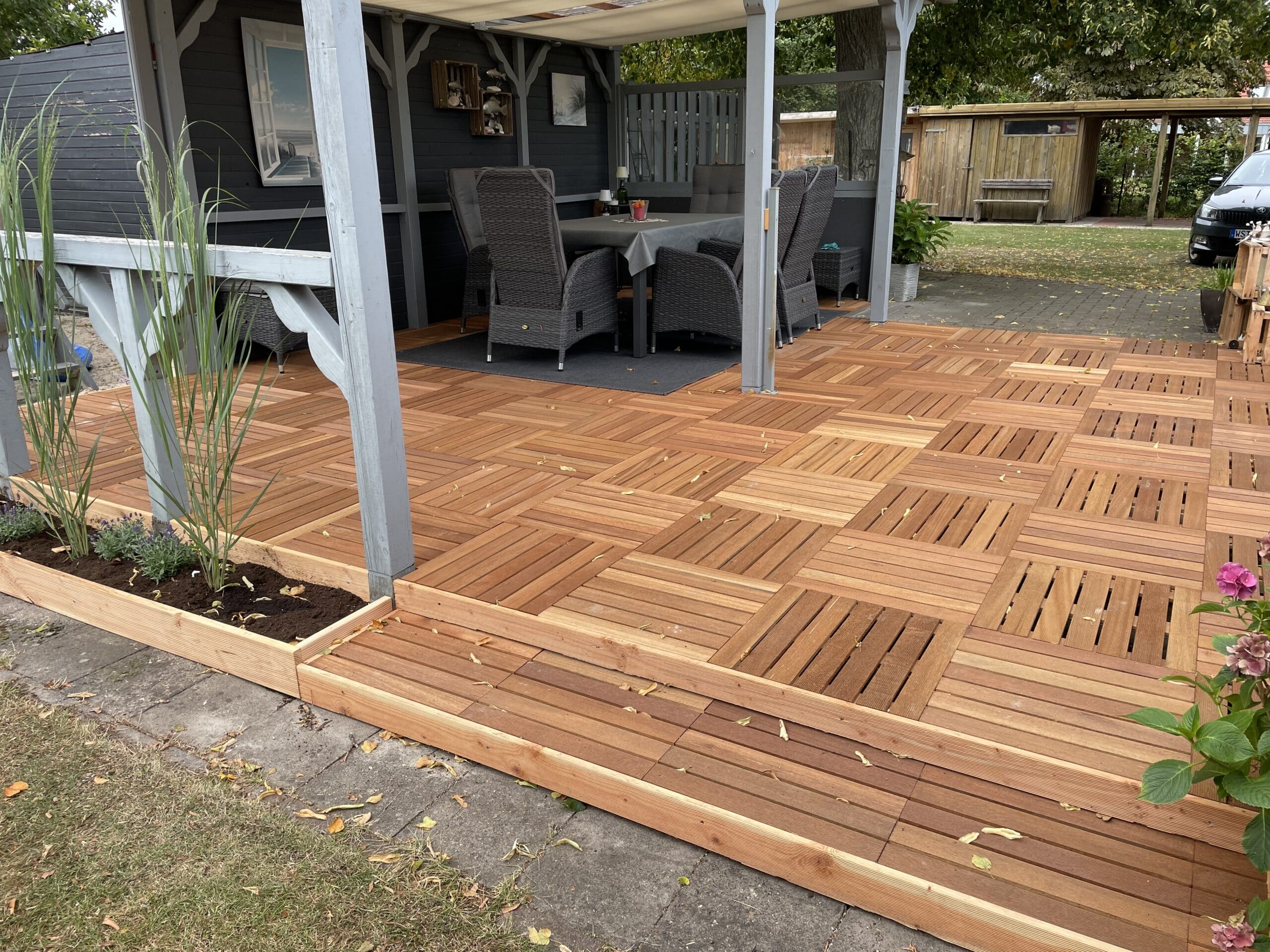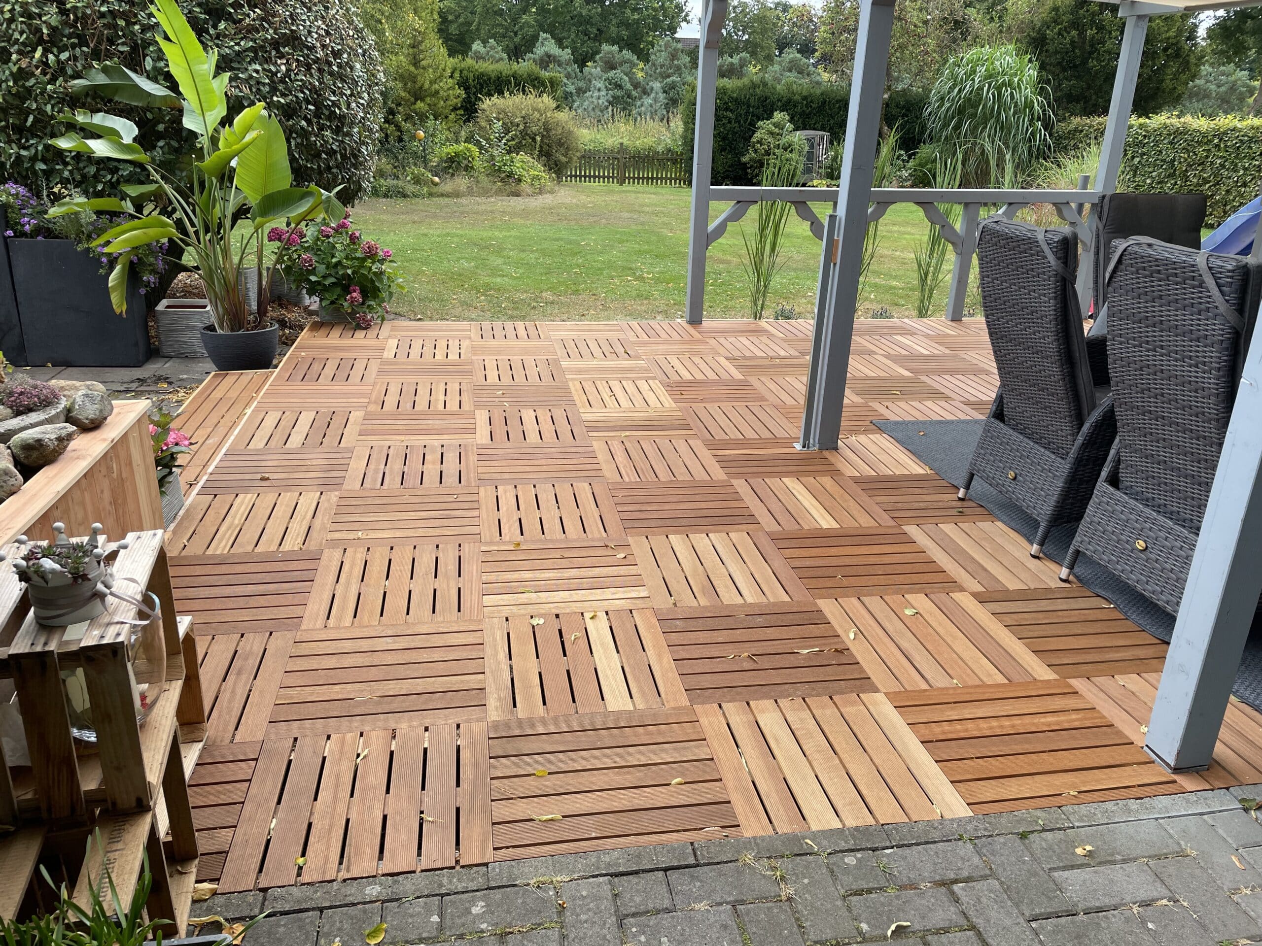 want Bangkirai is hard en daarom een zeer goed constructiehout. - Er zijn 4 tegels per m² nodig.