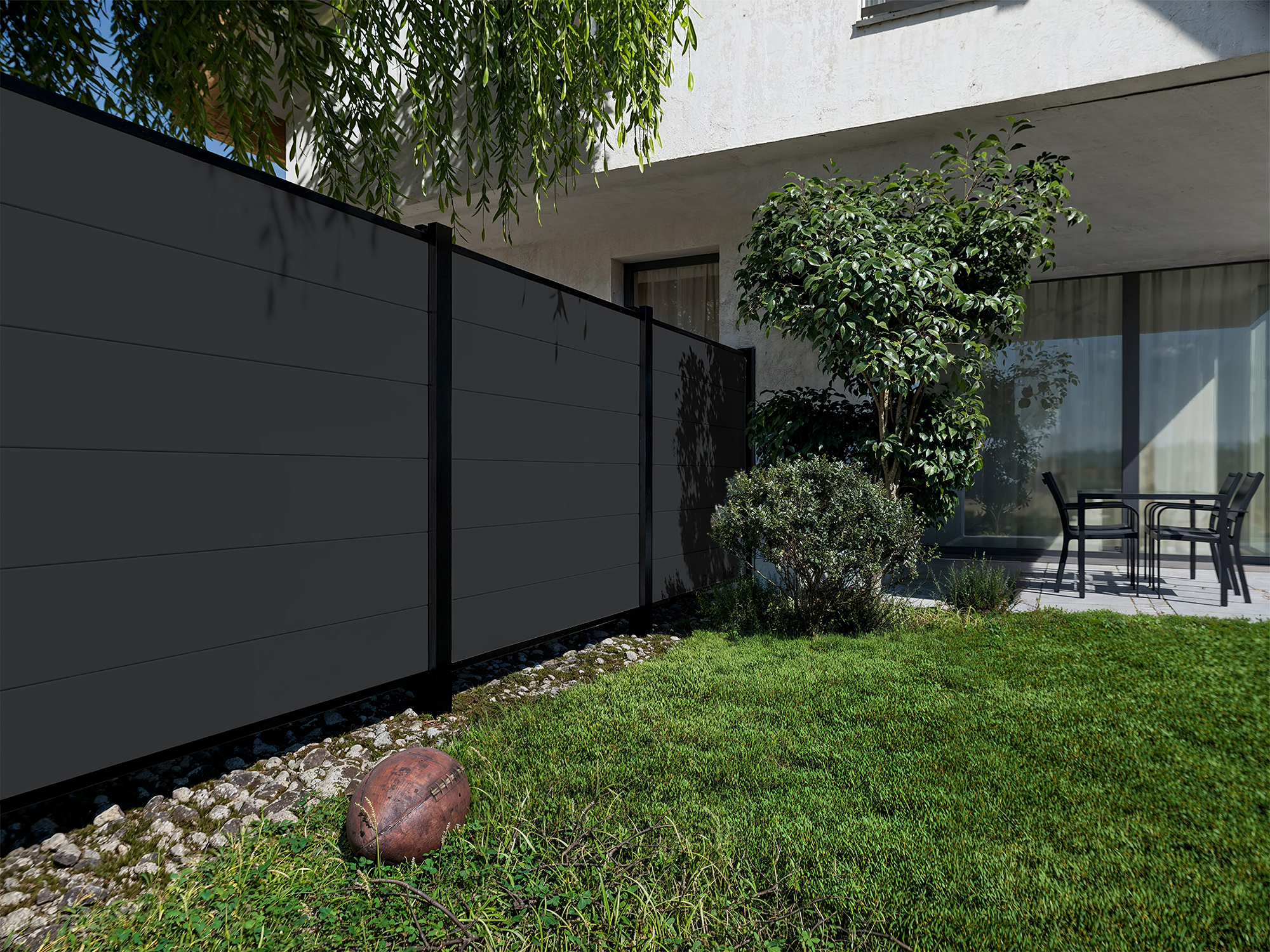 Tuinafscheiding, zichtscherm, PVC-steeksysteem, antraciet