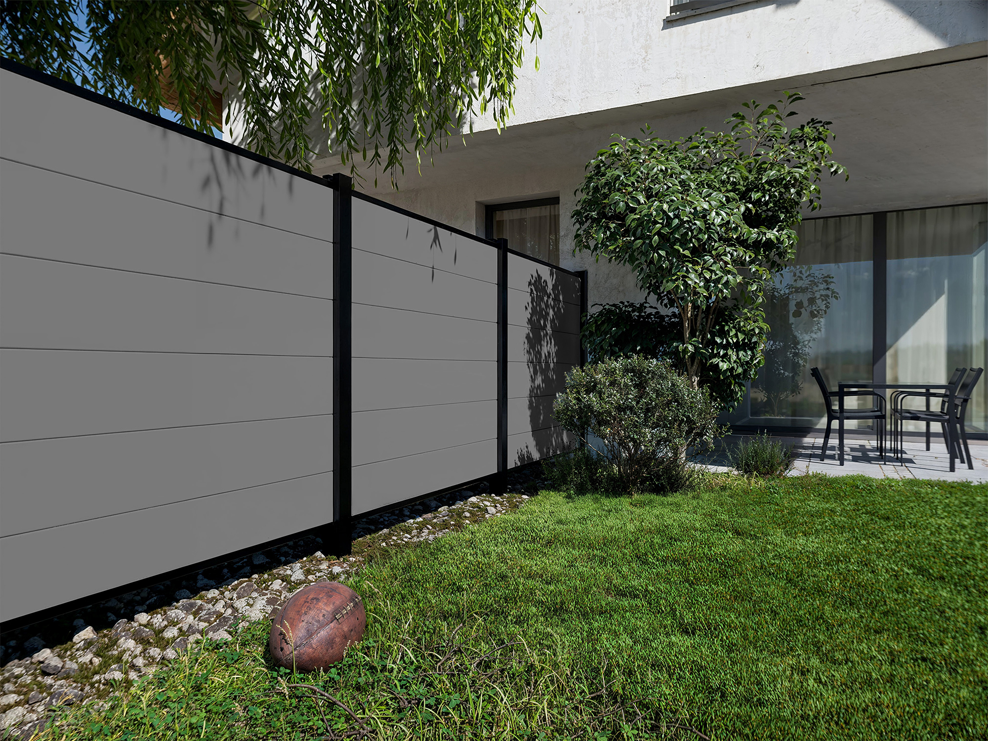 Tuinafscheiding, zichtscherm, PVC-steeksysteem, Grey Wood