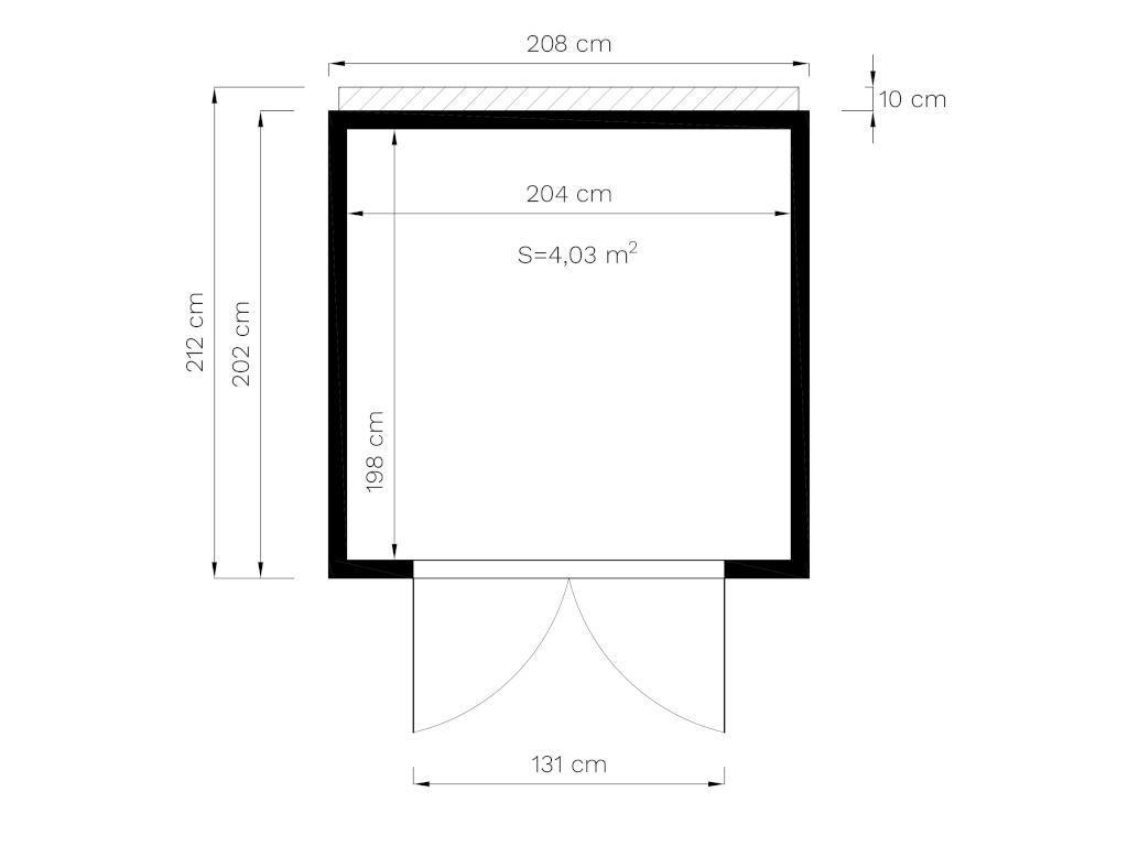 | Inwendige afmeting huis / grootste kamer (B x D cm): | 204 x 198 cm |