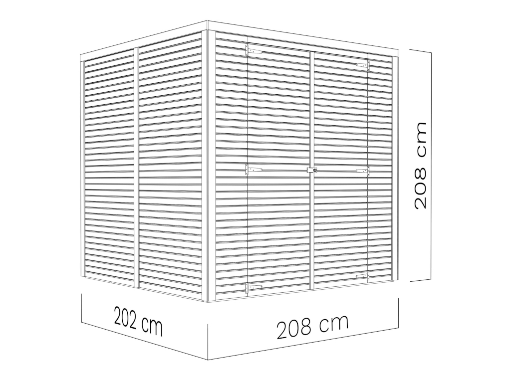 | Buitenmaten met dakoverstek (B x D): | 208 x 212 cm |