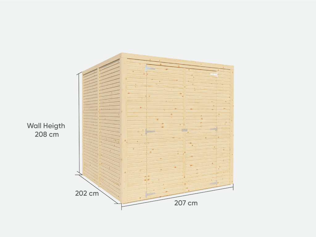 | Inwendige afmeting huis / grootste kamer (B x D cm): | 204 x 198 cm |