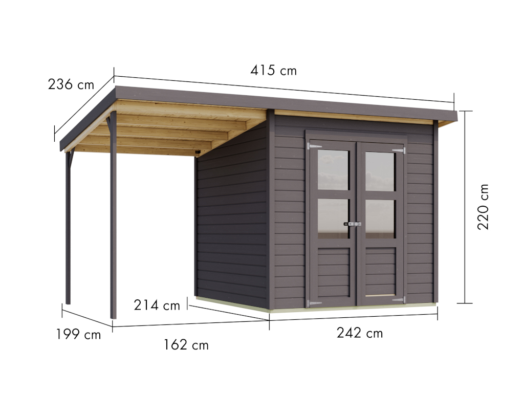 | Buitenmaten met dakoverstek (B x D): | 415 x 236 cm |