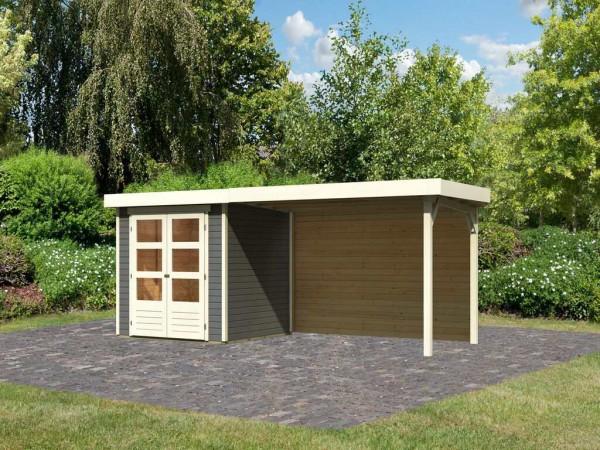 Tuinhuis Askola 2 19 mm terragrijs incl. 2,8 m aanbouwdak + achterwand