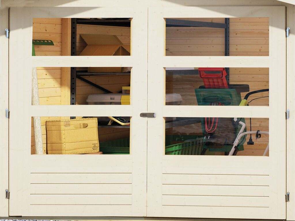 Met zijn geringe wanddikte van slechts 19 mm is het tuinhuis ideaal voor het opberggen van fietsen en tuingereedschap. Gemakkelijk te monteren voldoet deze eenvoudige uitvoering volkomen als beschutting of opbergruimte.