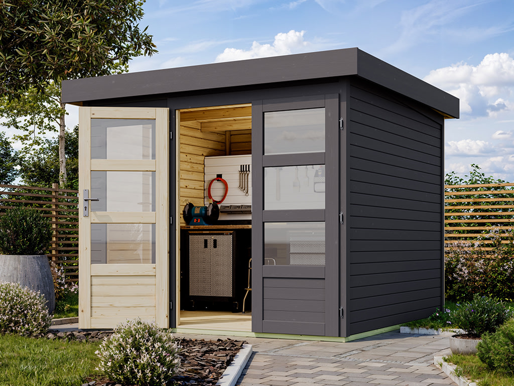 Met een wanddikte van 19 mm is dit tuinhuis ideaal als overdekte stallingsplek voor fietsen, tuingereedschap en andere tuinspullen. Dankzij de eenvoudige montage is deze uitvoering als overkapping of bergruimte meer dan voldoende.