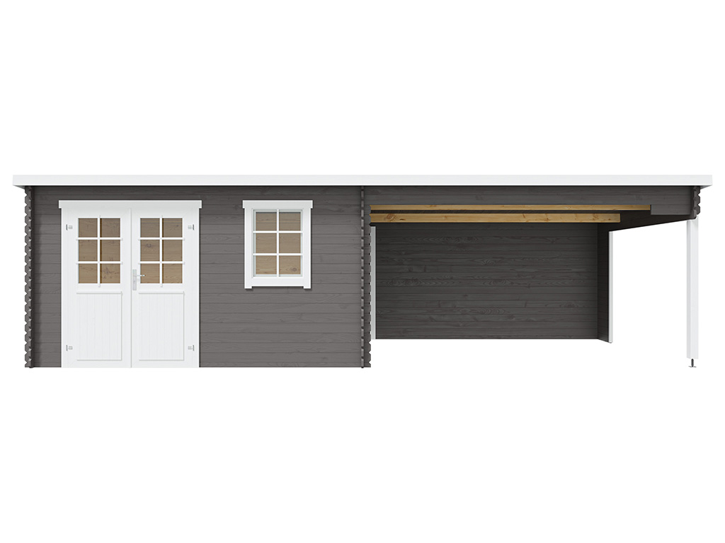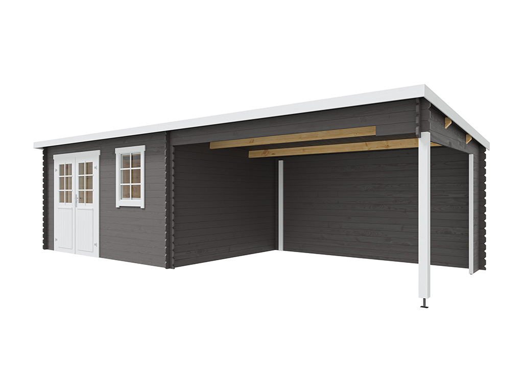 Blokhut Aida 800 28 mm carbongrijs met 3,8 m aanbouw