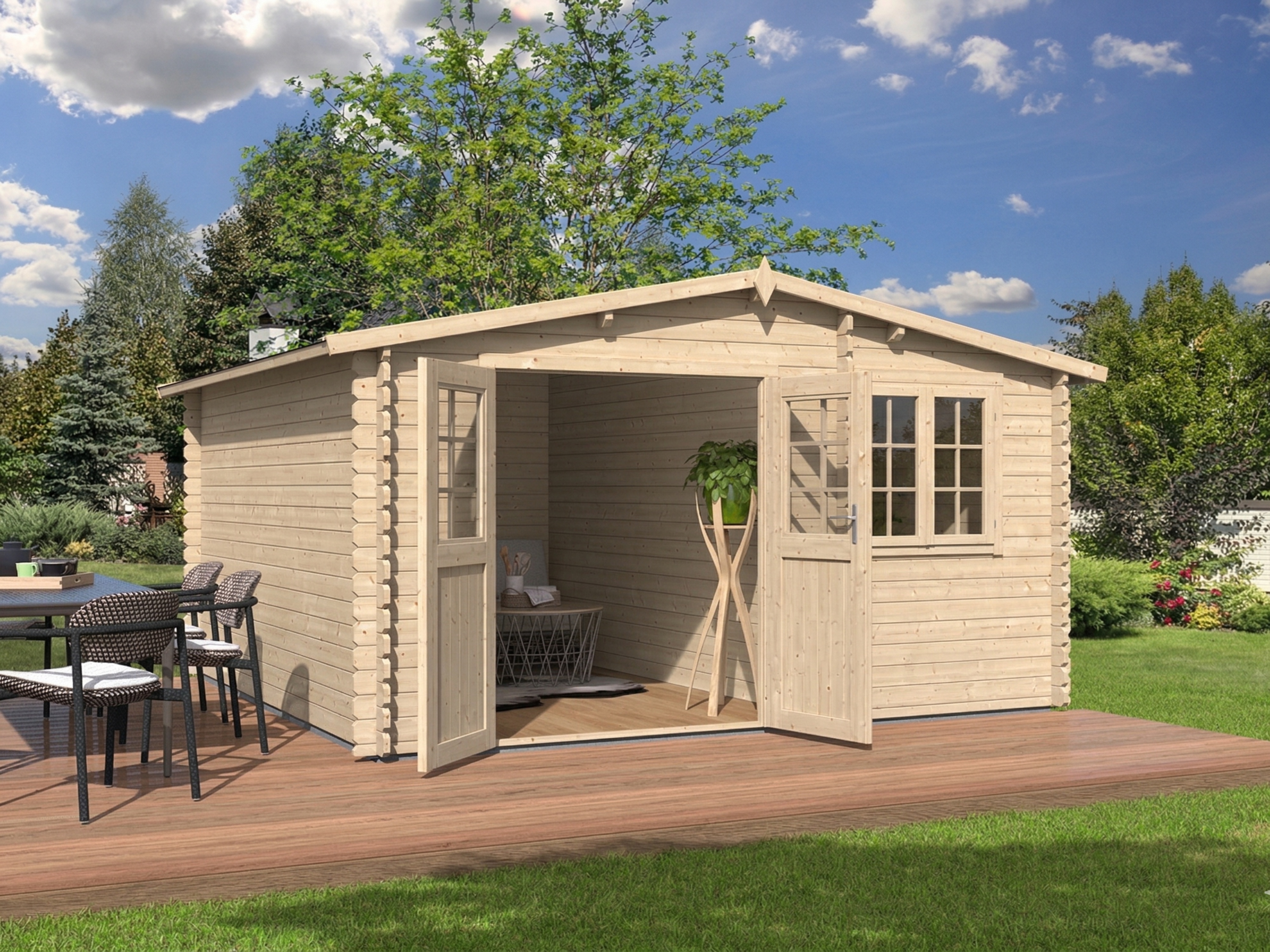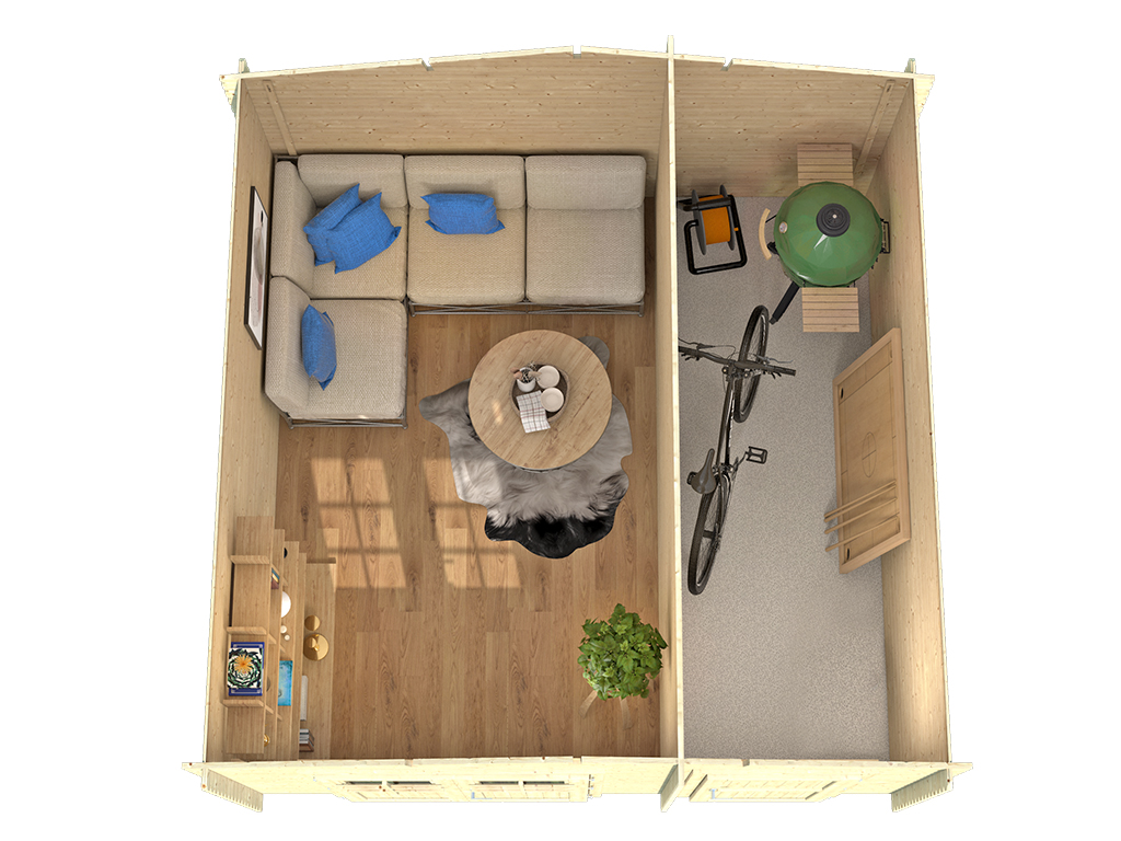 Tuinhuis blokhut "Aster 1 B" 28 mm Zadeldak Tweekamerwoning