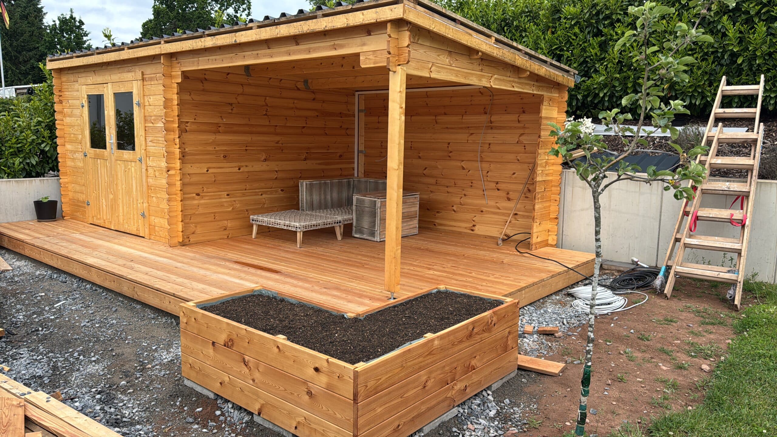 Het tuinhuis kenmerkt zich door zijn nauwkeurig verwerkte balken. De traditionele hoekverbinding maakt een bijzonder hoge stabiliteit mogelijk. - Eenvoudige constructie