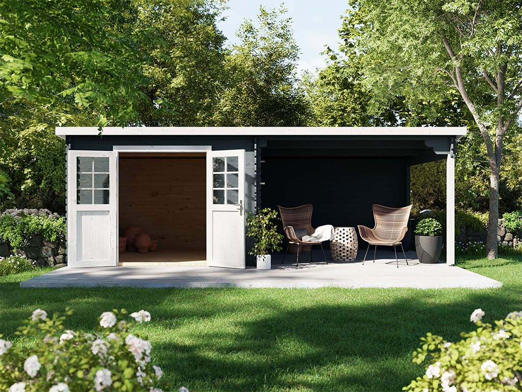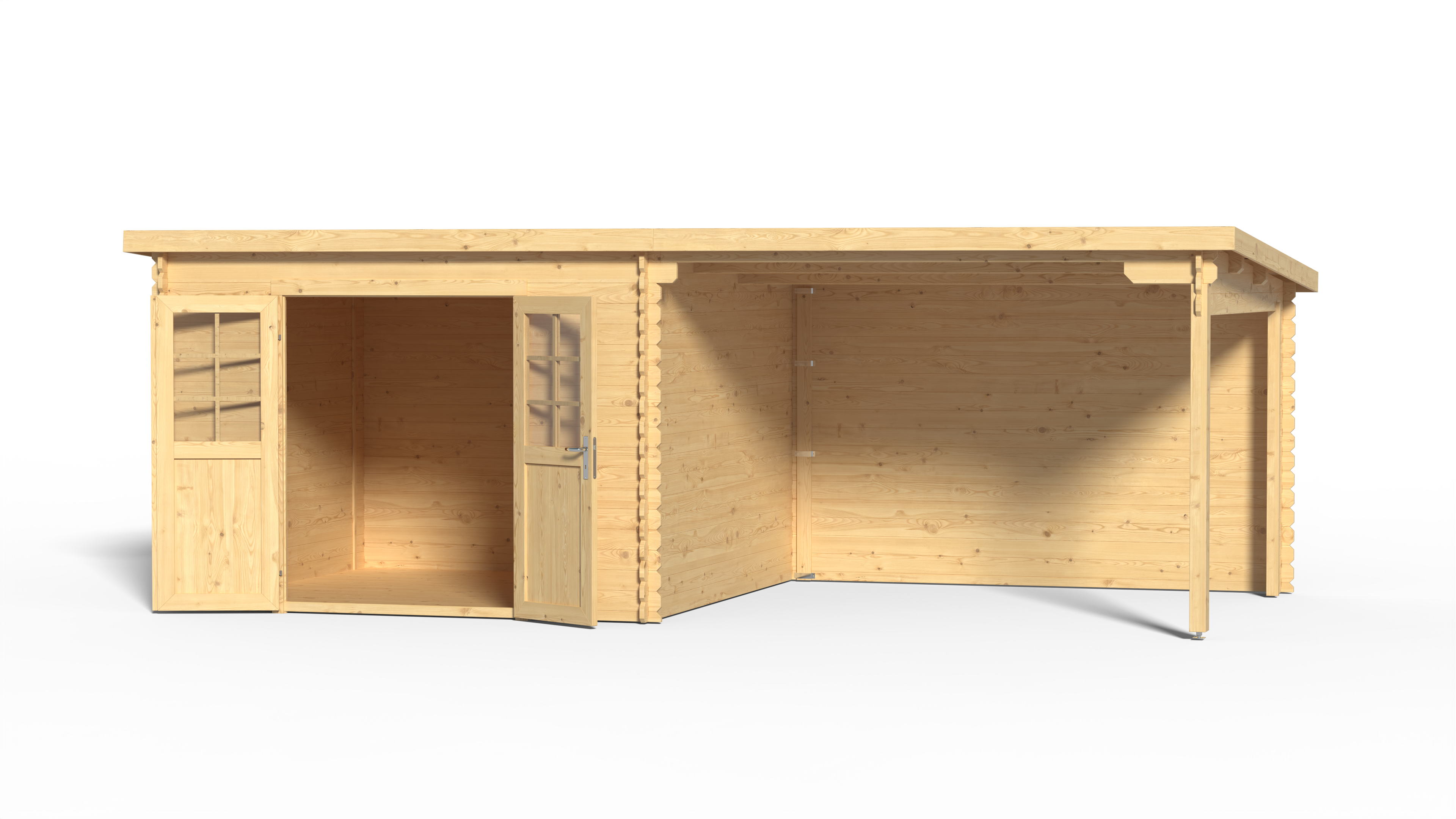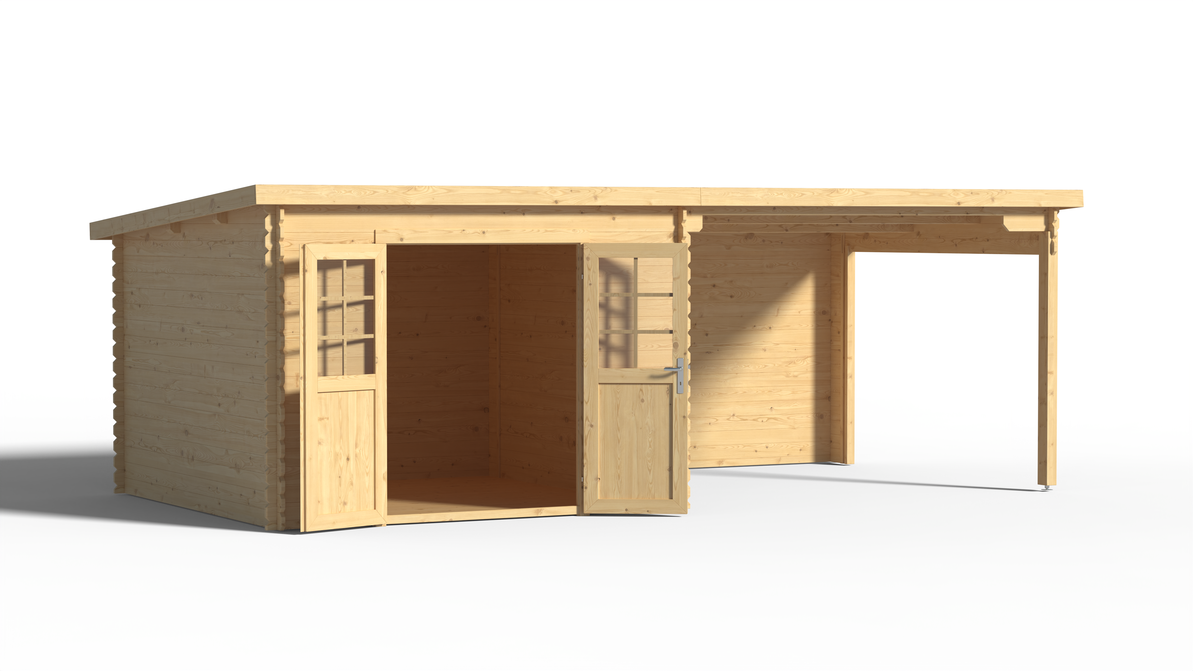 Tuinhuis blokhut CA2977 28 mm naturel met 3 m aanbouw