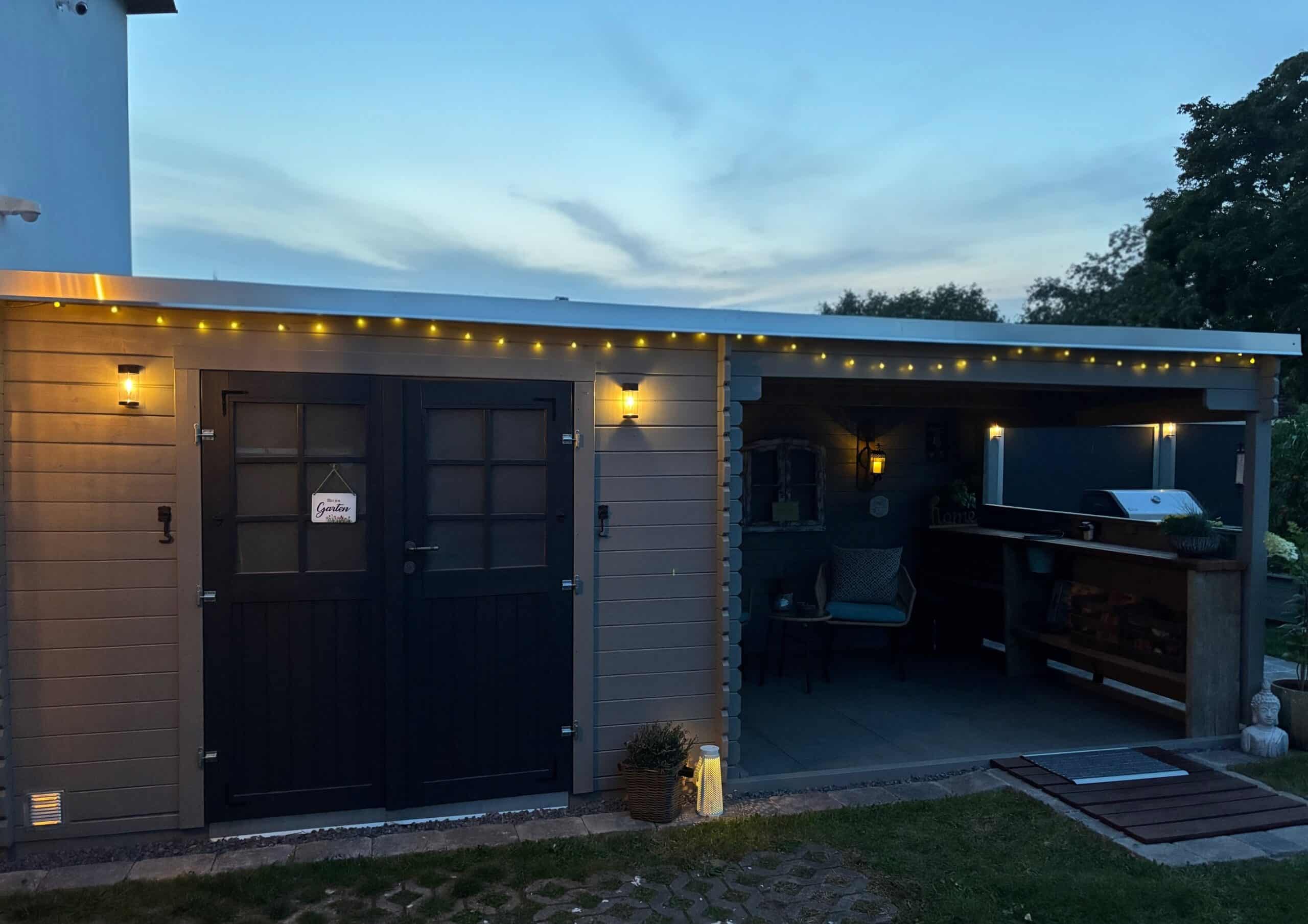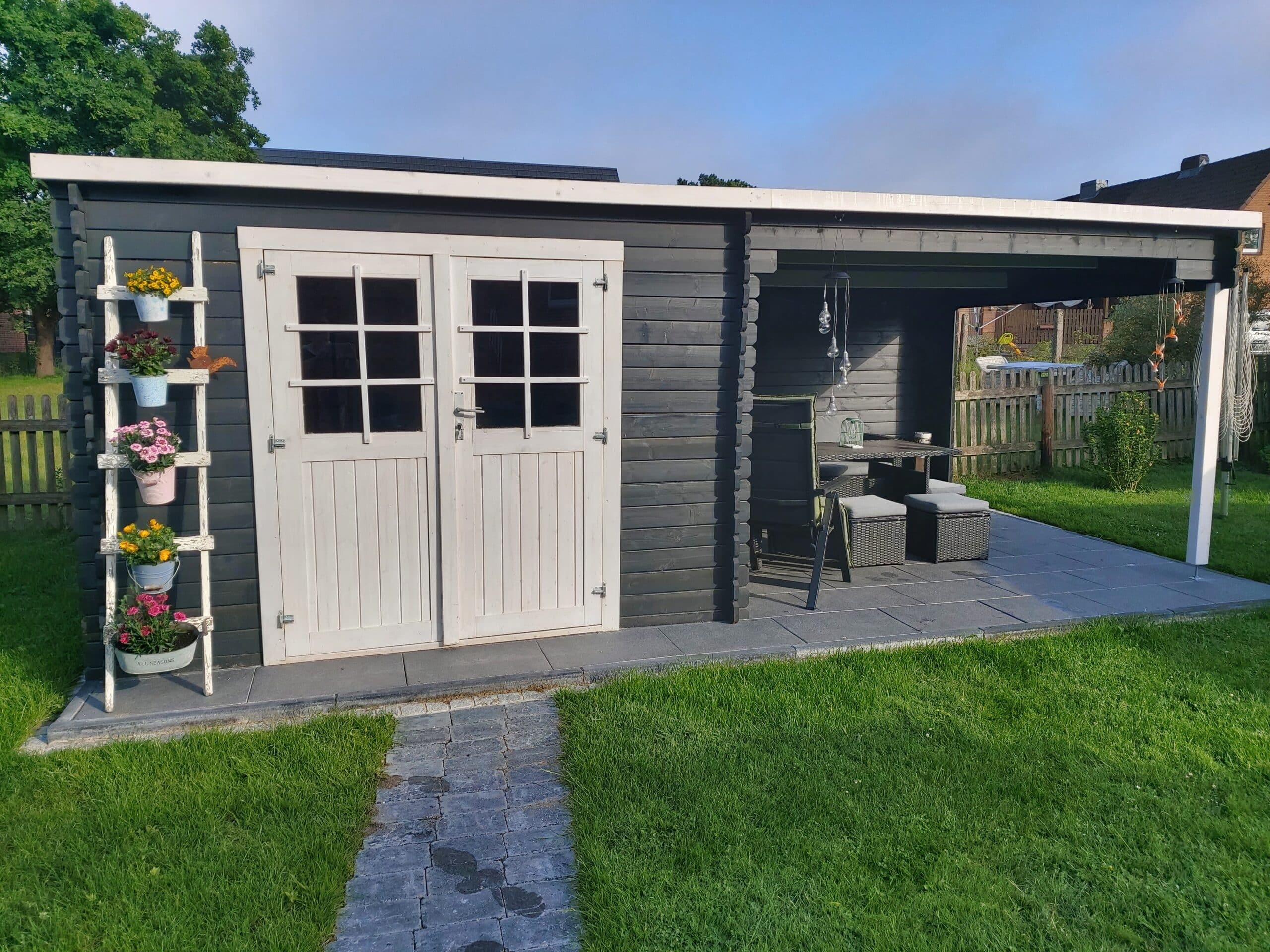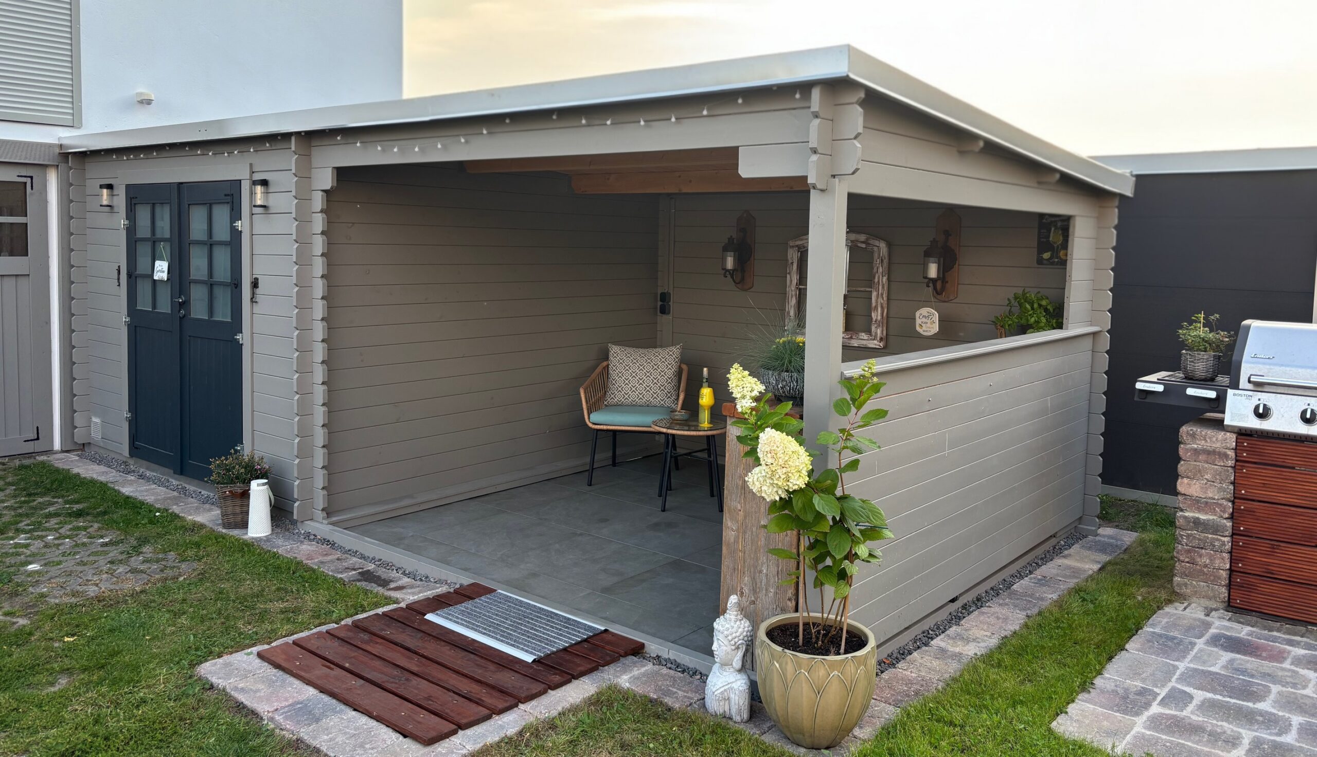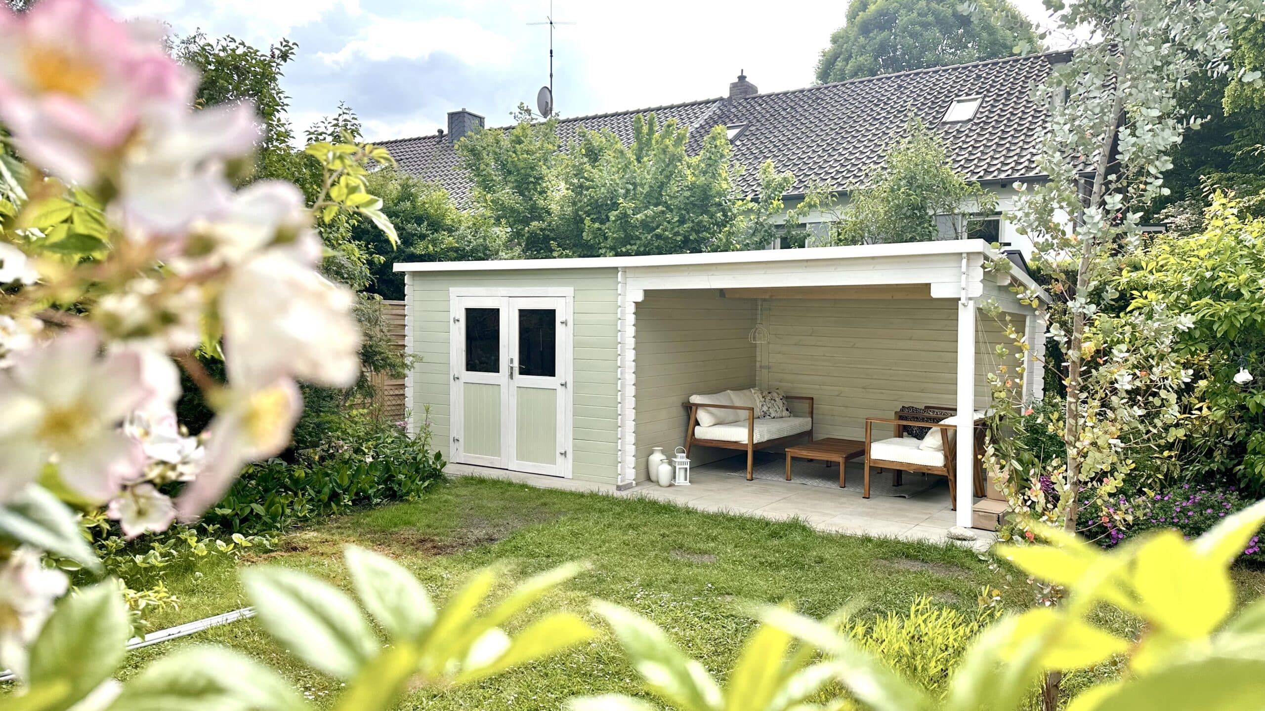 De royaal geproportioneerde 300 cm brede aanbouw met achterwand geeft je de mogelijkheid om een dagje buiten in de tuin te genieten, beschut tegen zon en regen. - Modern 17 mm lessenaarsdak