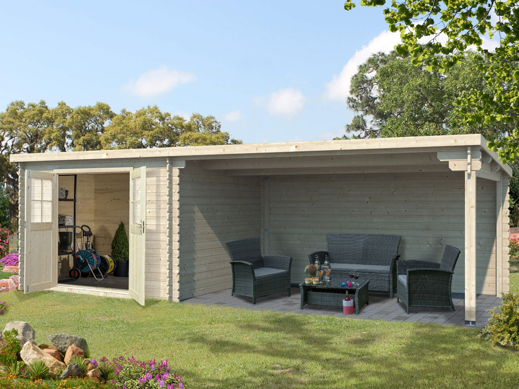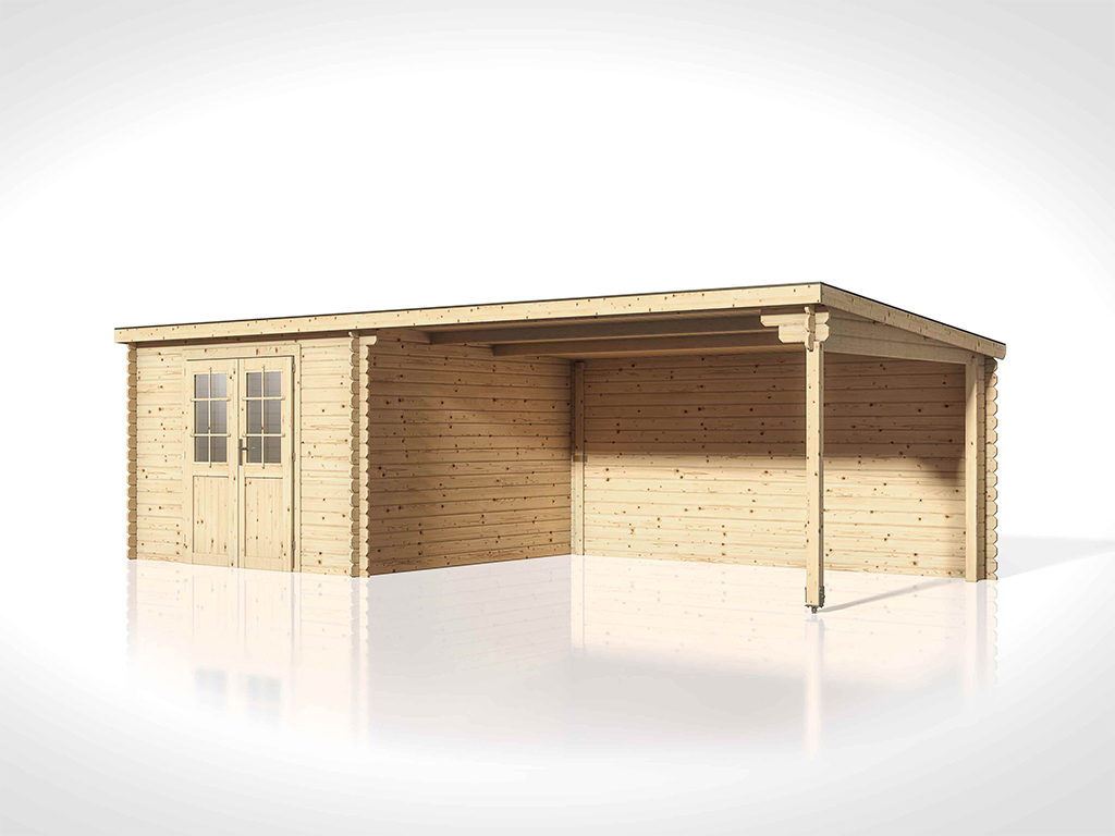 Tuinhuis blokhut CA2978 28 mm onbehandeld met 4 m aanbouw