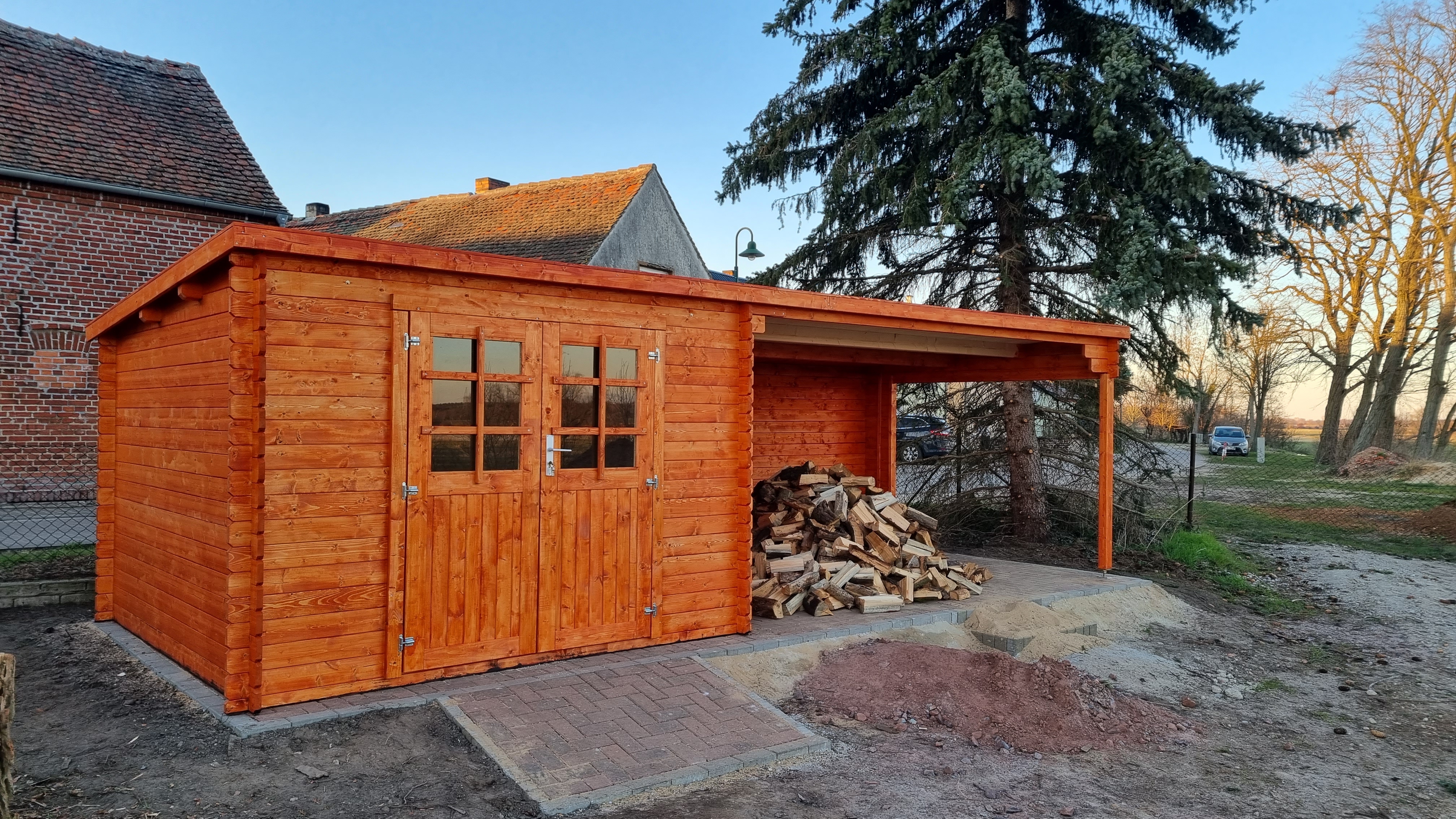 Het bestel- en leveringsproces was eersteklas! Ook de communicatie met de rederij verliep goed. De levering was op tijd en de chauffeur was uiterst behulpzaam bij het positioneren van de grote pallet op de oprit. De pallet wordt verpakt om hem te beschermen tegen weersinvloeden, zodat zelfs na dagenlange regen de planken allemaal droog blijven. Een klein puntje van kritiek was het ontbreken van instructies, deze zaten er niet bij. De winkel reageerde binnen 24 uur op mijn e-mail en stuurde montage-instructies per e-mail (en in het weekend!). De instructies zelf zijn voldoende en gemakkelijk te begrijpen - maar zo nu en dan zou je graag een paar opmerkingen in tekstvorm willen, maar die zijn er helemaal niet. Je oefent vaak met beeldanalyse. Voor het opzetten dient u eerst alles op volledigheid te controleren en te sorteren (ontbrekende instructies), omdat de elementen niet op de pallet gerangschikt of gebundeld zijn. Bij sommige elementen zitten ook extra borden. Wees dus niet verbaasd als je denkt dat je verkeerd hebt geteld! De hut is inmiddels antraciet en wit geschilderd en de eigenaar is super blij!