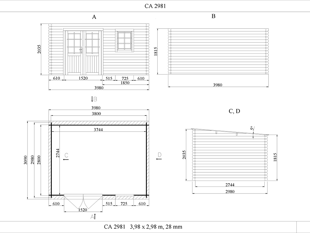 Tuinhuis blokhuis CA2981 28 mm