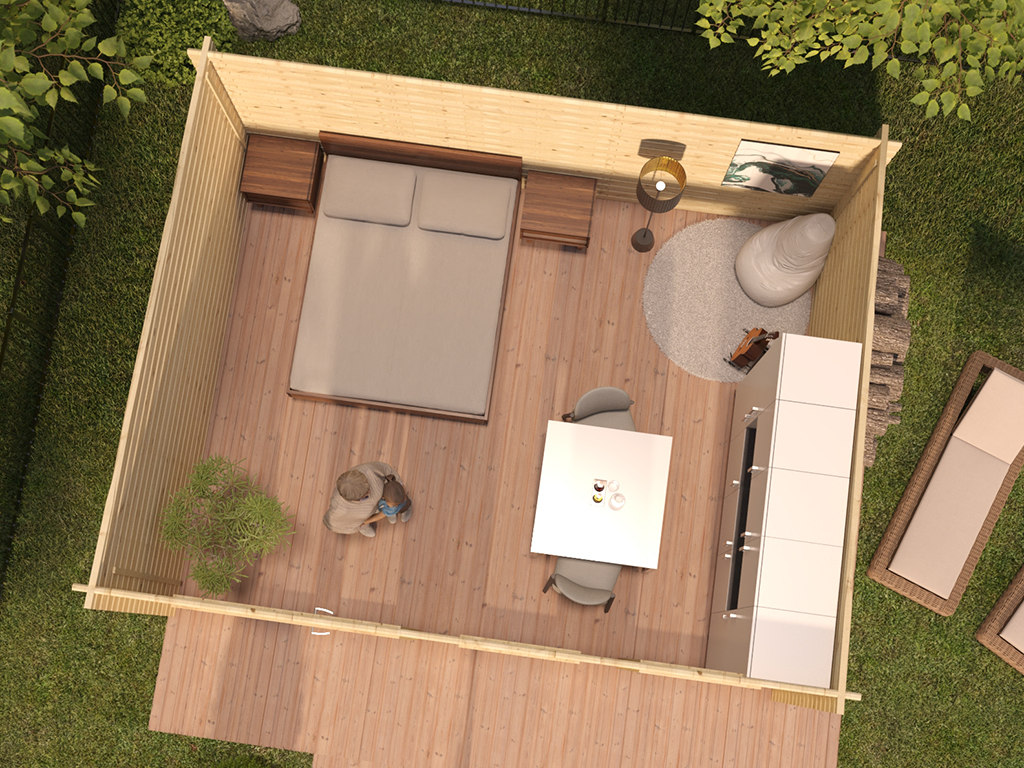 Als een van de klassiekers onder de tuinhuizen staat een blokhut bekend om de zeer robuuste constructie in combinatie met een natuurlijke, authentieke uitstraling. Deze bouwmethode is geïnspireerd op de traditionele blokhut. Dankzij het tijdloze, rustige design past dit tuinhuis harmonieus in vrijwel iedere tuin.