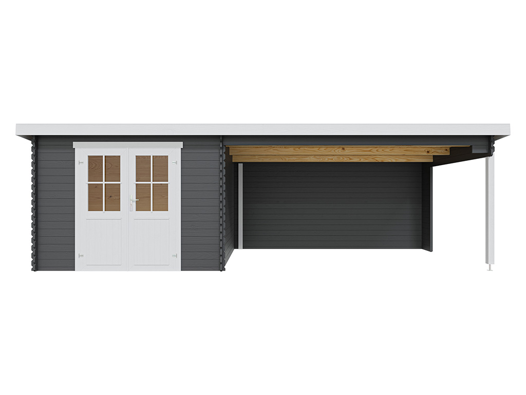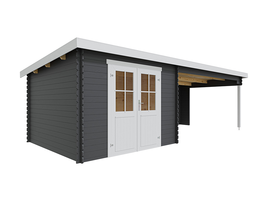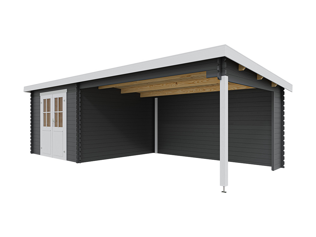 Blokhut St. Louis Exclusief 28 mm carbongrijs met 4 m aanbouw