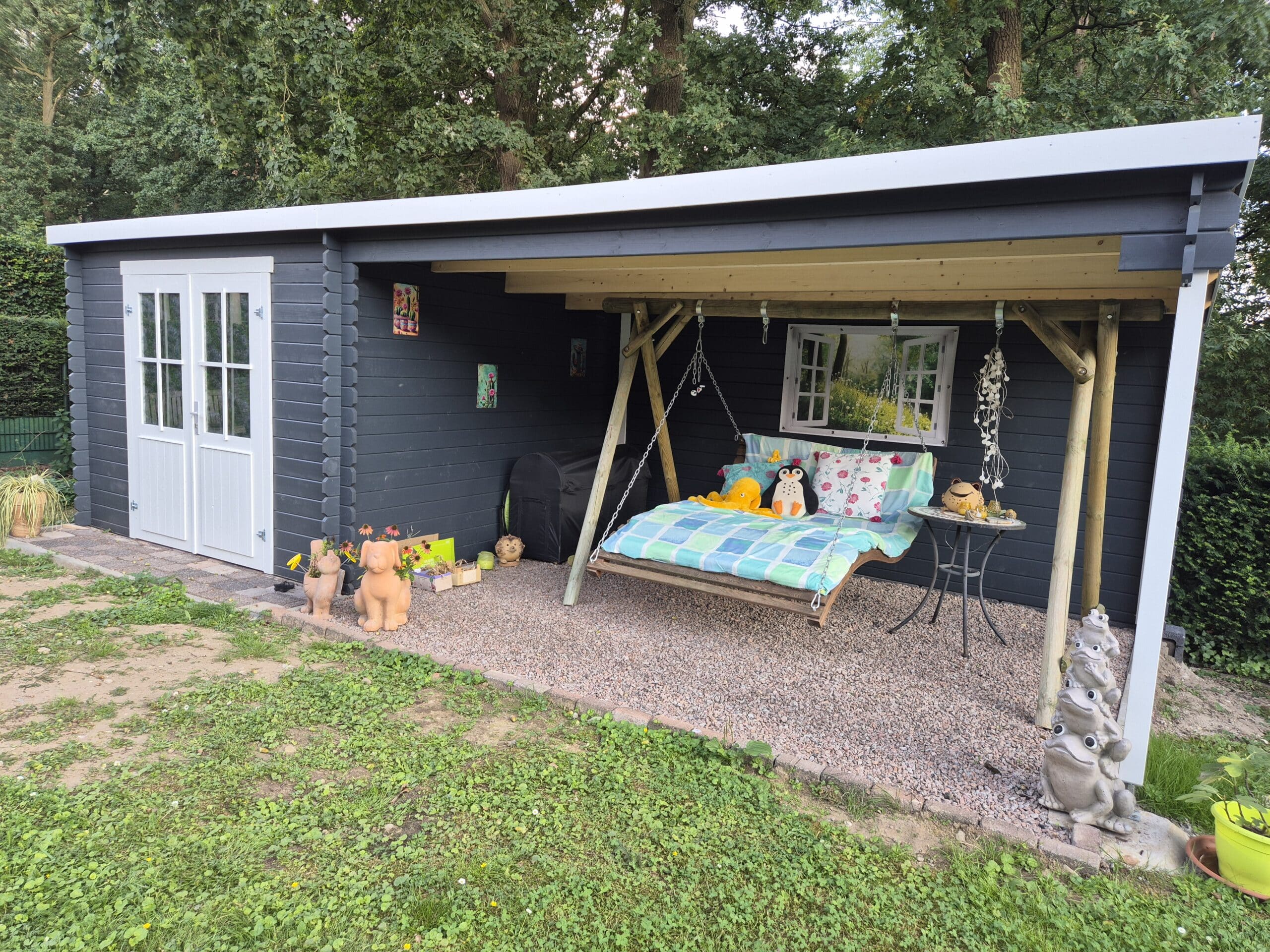 De levering verliep vlekkeloos en op tijd. De constructie zelf was ook eenvoudig. Sommige balken en houten strips waren echter kromgetrokken en verdraaid. Maar met een beetje wilskracht en improvisatie konden we alles in elkaar zetten. De verf zat prima, maar er zit ook extra verf bij om over te schilderen mocht er iets gebeuren. Wij zijn ontzettend blij met het resultaat. Het huis is ruim en het terras is heerlijk! Eindelijk schaduw in de tuin en voldoende ruimte voor loungemeubilair. De buren vinden het ook geweldig. Kortom, absoluut een aanrader.