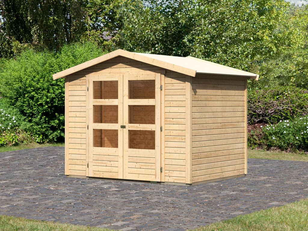 Het grondoppervlak van het tuinhuis is 4,58 m² met een basisafmeting van 242 x 182 cm (B x D). Door een nokhoogte van 209 cm is een optimale benutting van de ruimte gegarandeerd.