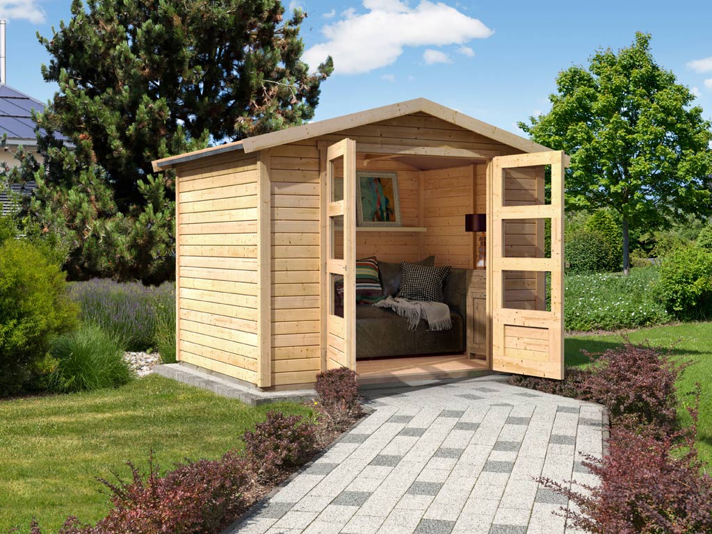 Het tuinhuis van hoge kwaliteit wordt gekenmerkt door zijn geselecteerde, eersteklas sparrenhout. Sparrenhout is bijzonder duurzaam en robuust, wat de nodige stabiliteit garandeert. Bovendien overtuigt dit type hout door een laag gewicht, eenvoudige verwerking en hoge elasticiteit.