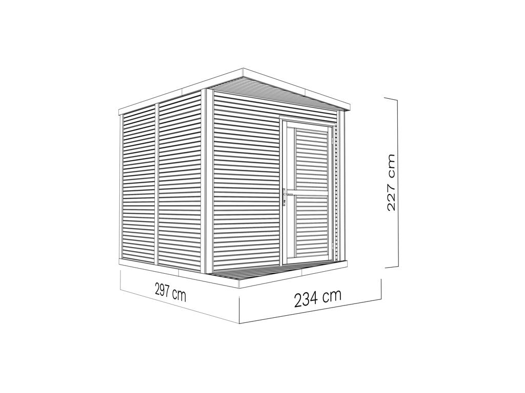 B x D x H: 234 x 303 x 227 cm, Basismaat huis: 234 x 225 cm, incl. vloer