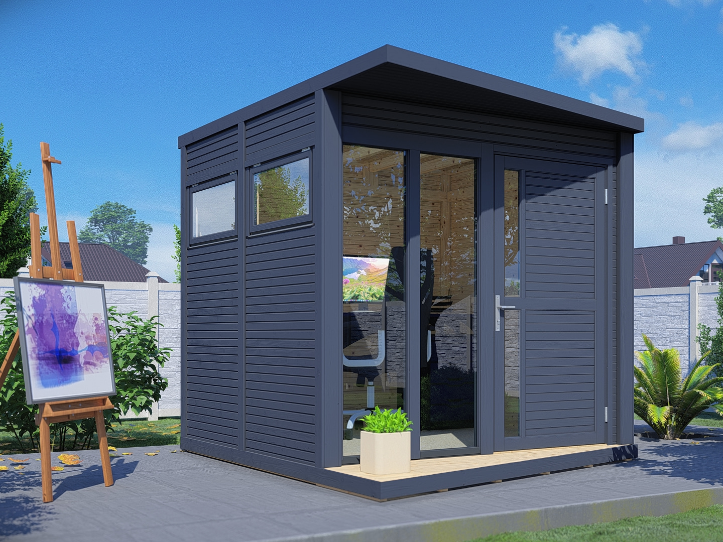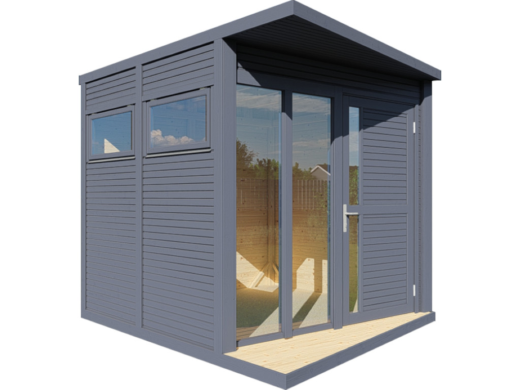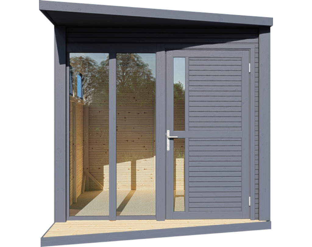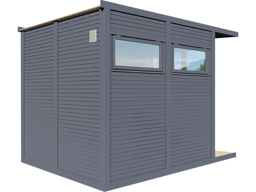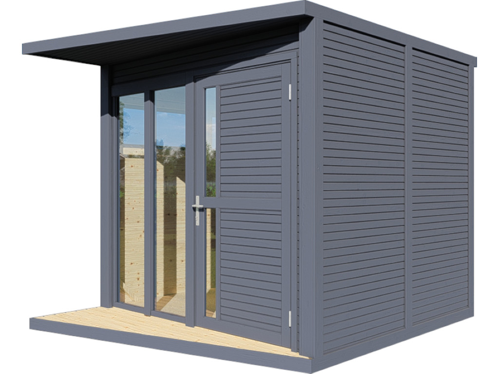 De Futura Premium is een tuinhuis in modern design. Vloerhoge ramen laten veel licht binnen in de kubusvormige ruimte met een vloeroppervlak van ca. 5,3 m². De enkelzijdig beglaste zijramen van veiligheidsglas kunnen worden geopend voor ventilatie. Alle elementen en houten onderdelen zijn exact geprefabriceerd voor een soepele montage. De gelijmde houten deur met cilinderslot biedt met de afmetingen 186 x 91 cm een royale toegang.
