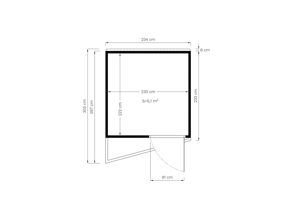 | Buitenmaten met dakoverstek (B x D): | 234 x 303 cm |