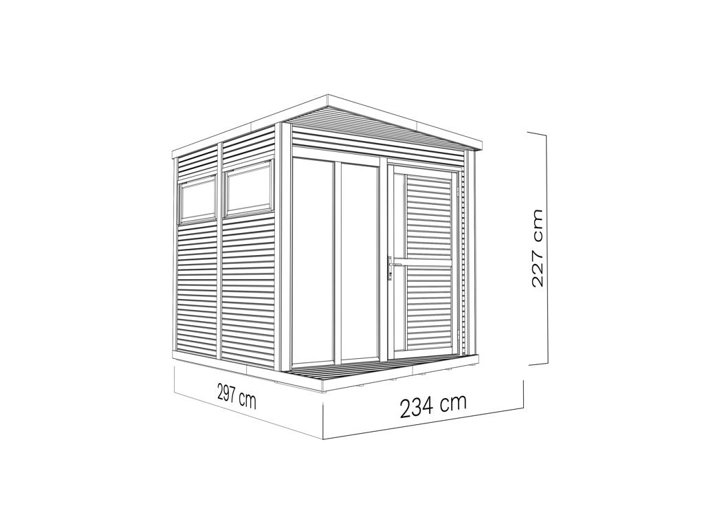 B x D x H: 234 x 303 x 227 cm, Vloermaat huis: 234 x 225 cm, incl. vloer