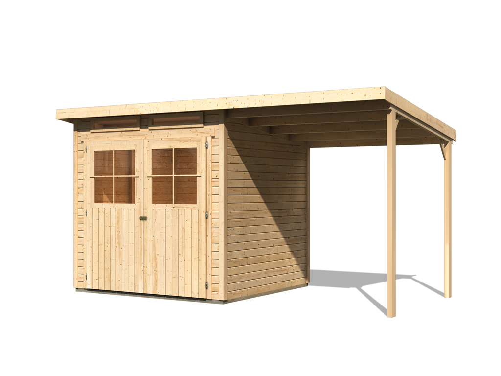 Tuinhuis "Marksburg 2" met aanbouw 14 mm naturel Tuinhuis "Marksburg 2" met aanbouw 14 mm naturel