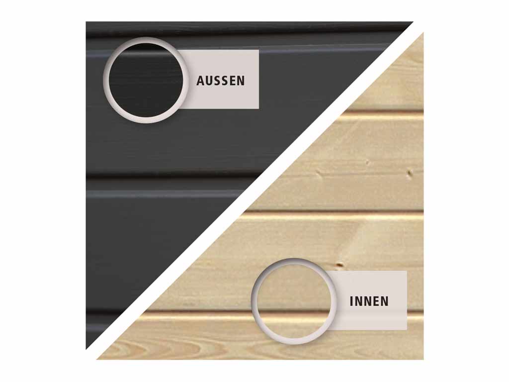 Om de duurzaamheid van het hout te verhogen en het uiterlijk van het tuinhuis te verbeteren, is het oppervlak behandeld met lak. De houtlak biedt bescherming door de buitenwanden van het tuinhuis af te dichten. Het is daarom vanaf het begin beschermd tegen weersinvloeden en ongedierte.