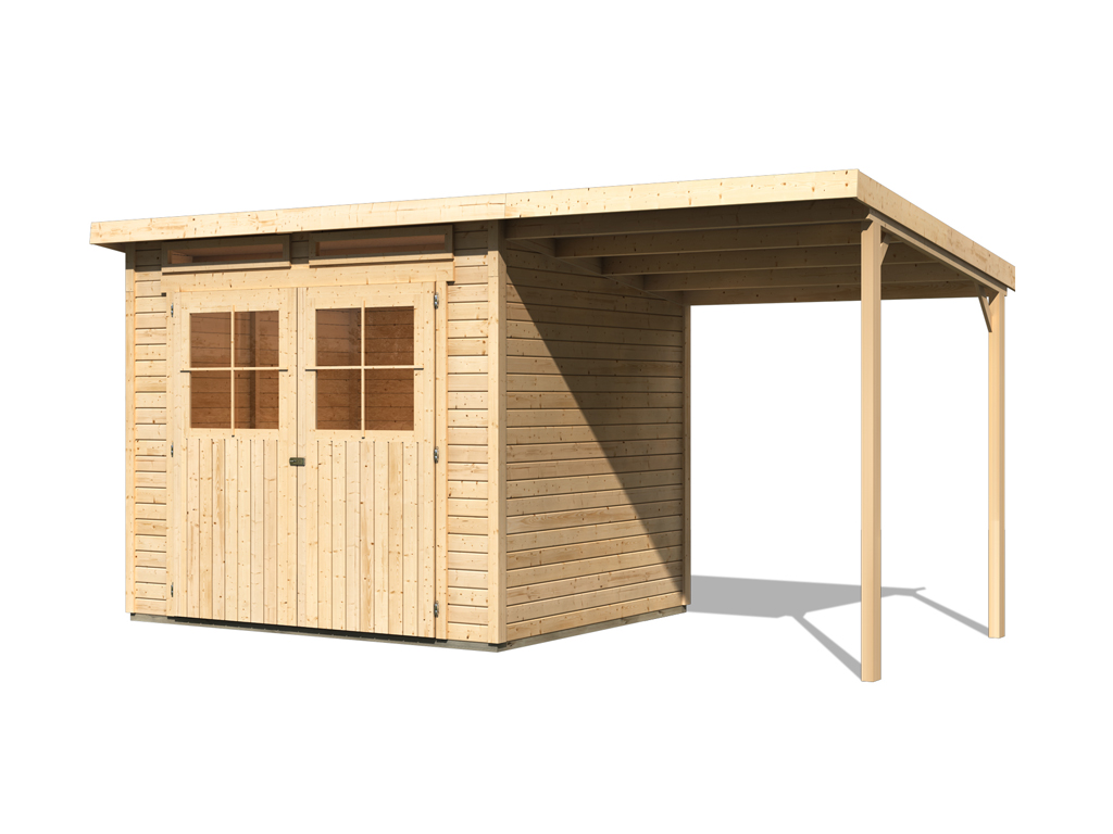 Tuinhuis "Marksburg 2" met aanbouw 14 mm naturel Tuinhuis "Marksburg 2" met aanbouw 14 mm naturel