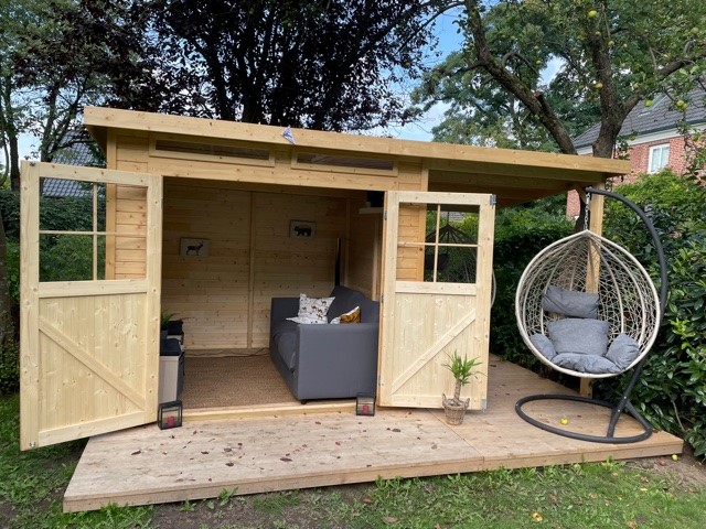 Het natuurlijke hout biedt een natuurlijke en tijdloze uitstraling. Daarnaast stelt het onbehandelde hout je in staat om de buitenzijde van het tuinhuis naar eigen wens in te richten.