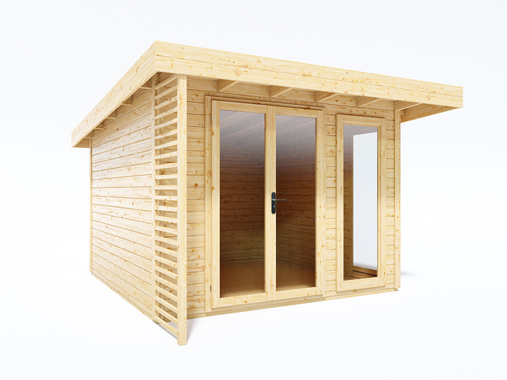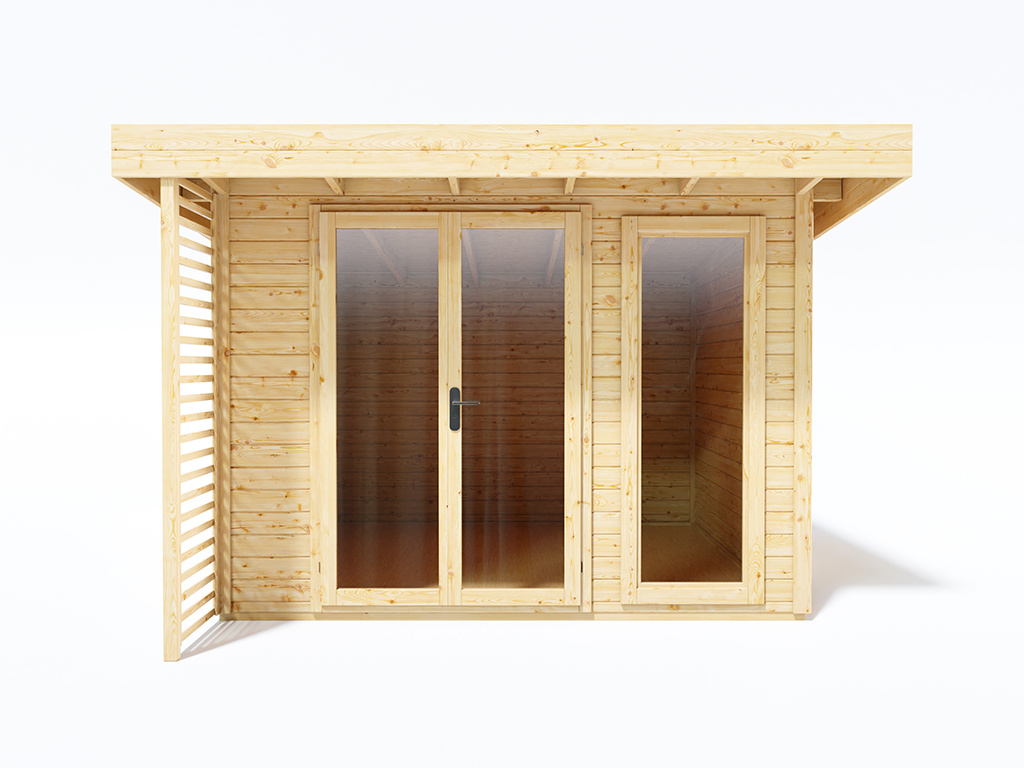 Tuinkantoor Arvo 28 mm naturel met 250 cm aanbouw Tuinkantoor Arvo 28 mm naturel met 250 cm aanbouw