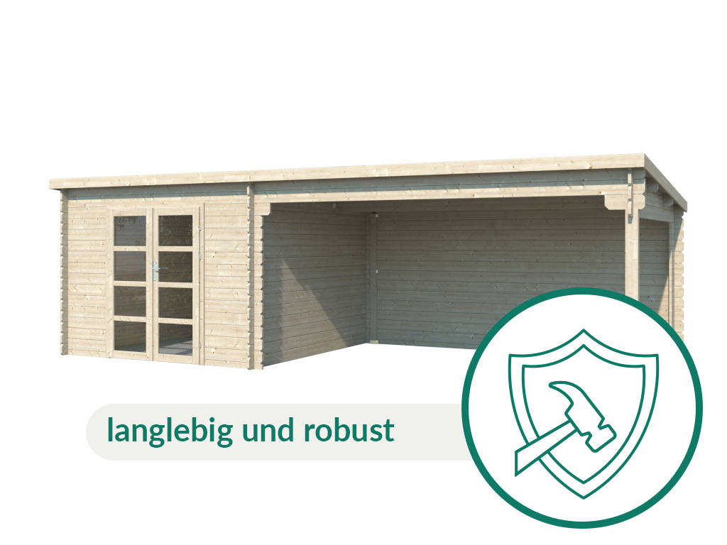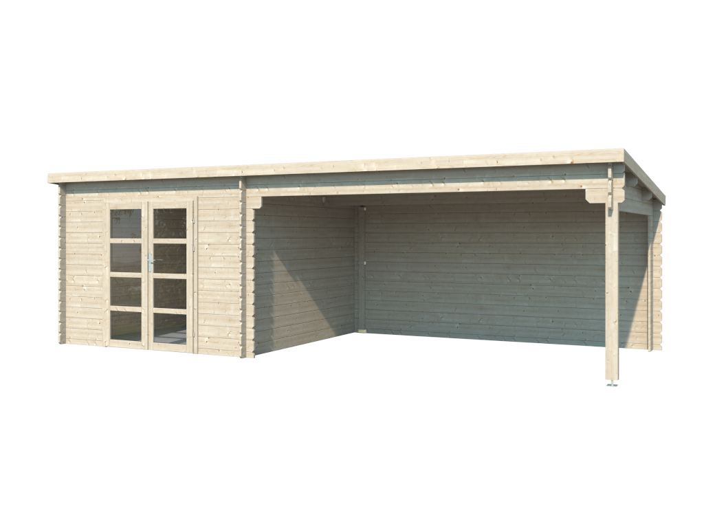 Tuinhuis Homeoffice blokhut Inna 34 mm onbehandeld met 4 m aanbouw