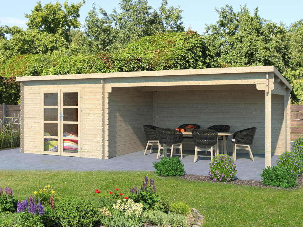 Tuinhuis blokhut Inna 34 mm naturel incl. 4 m aanbouw
