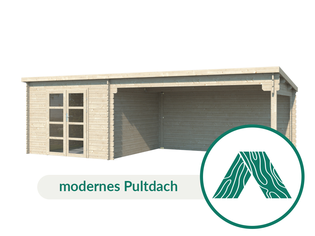 Tuinhuis blokhut Inna 34 mm naturel incl. 4 m aanbouw Modern tuinhuis met lessenaarsdak met...meer