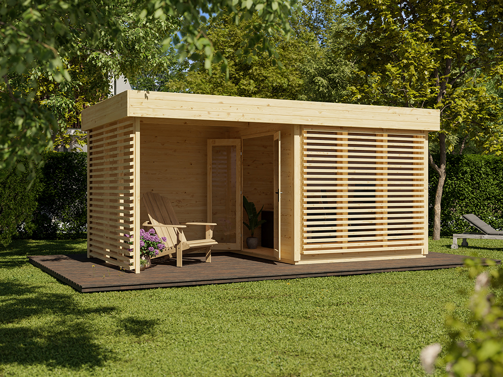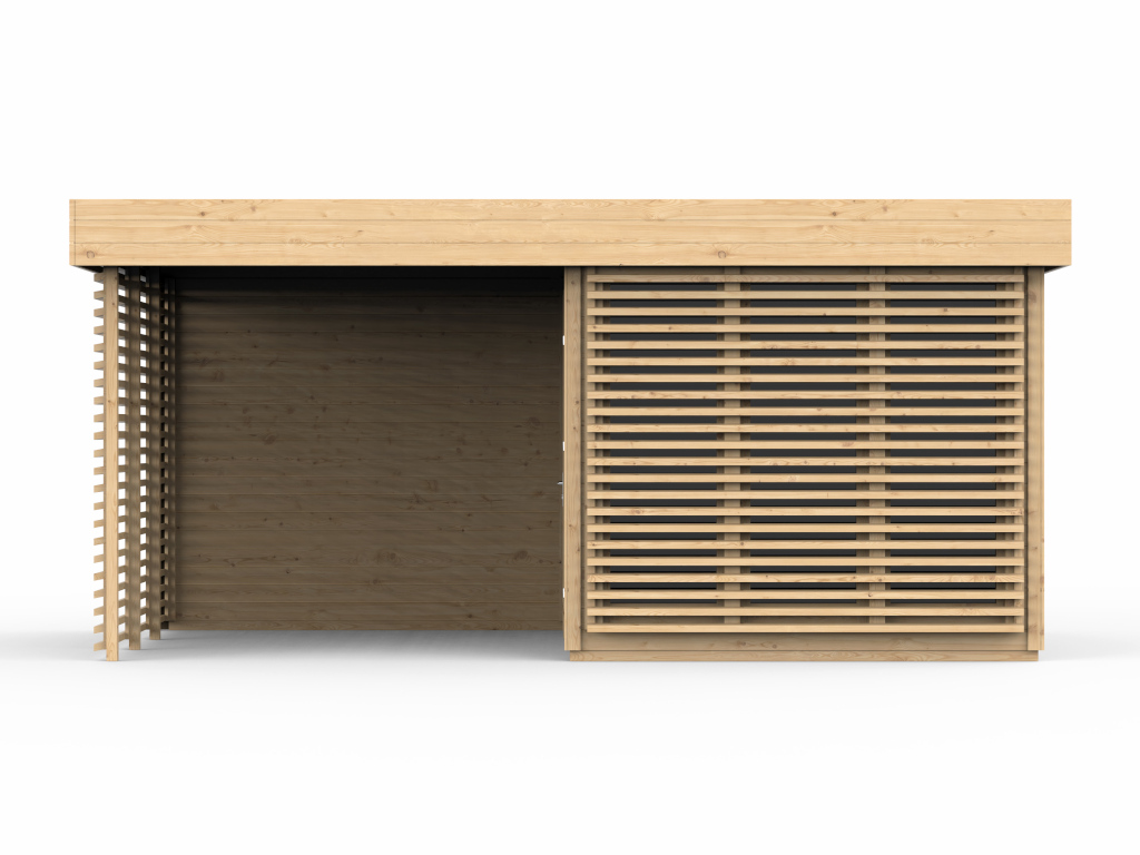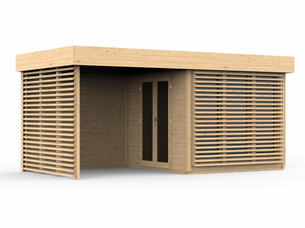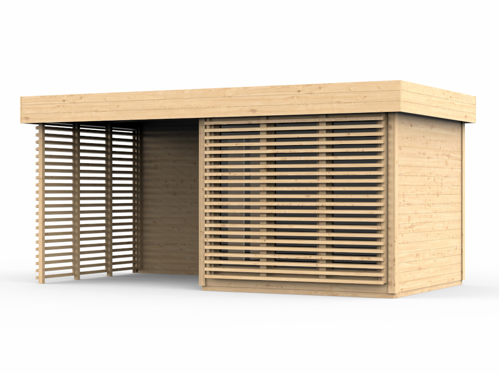 Tuinhuis Homeoffice Ivar 28 mm naturel met 264 cm aanbouw