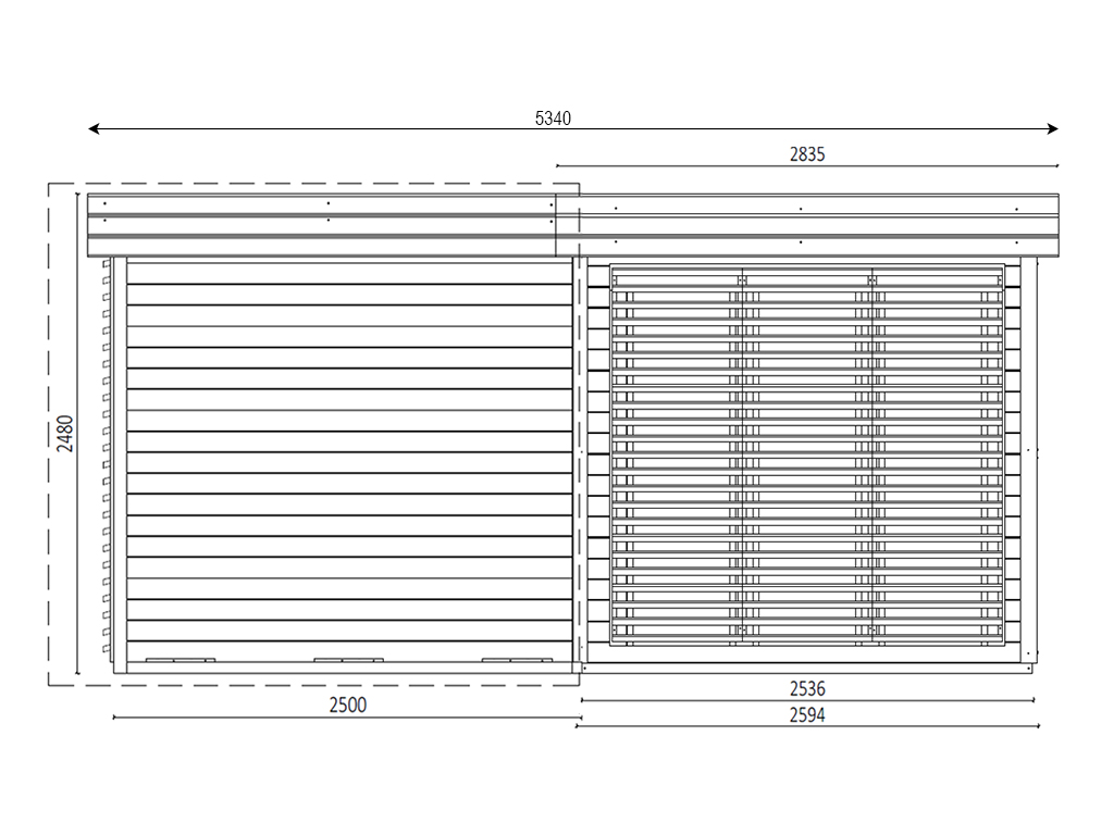 | Buitenmaten met dakoverstek - Breedte (cm): | 534 cm |