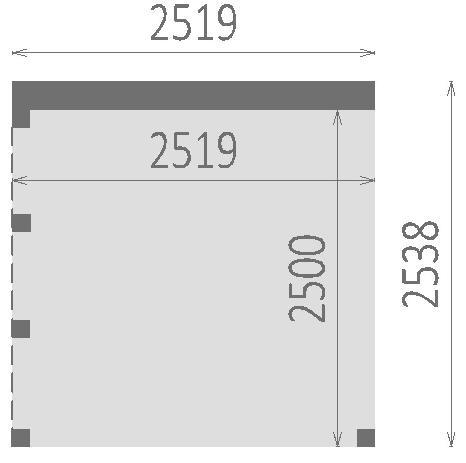 | Basisafmeting huis (B x D): | 248 x 253,6 cm |