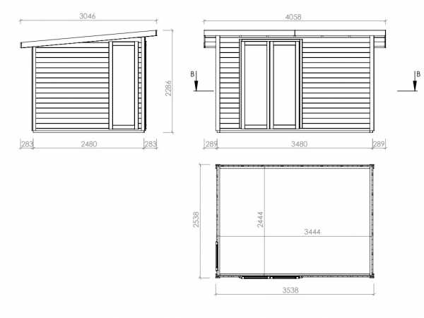 | Buitenmaten met dakoverstek (B x D): | 405,8 x 304,6 cm |