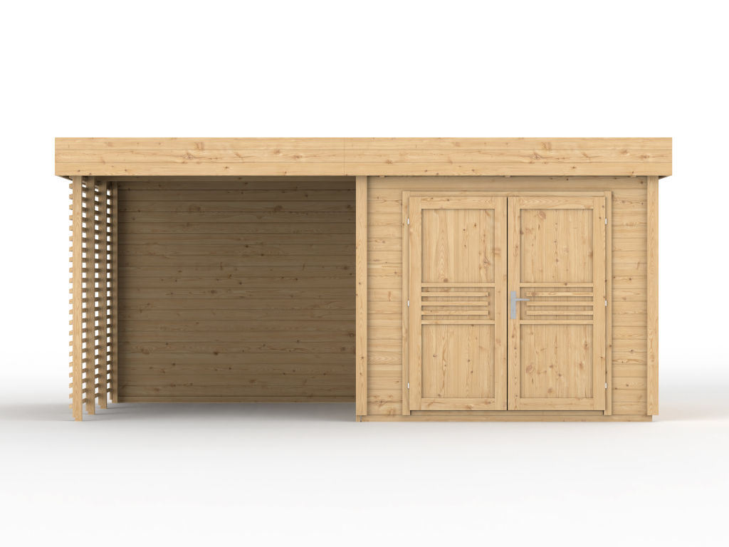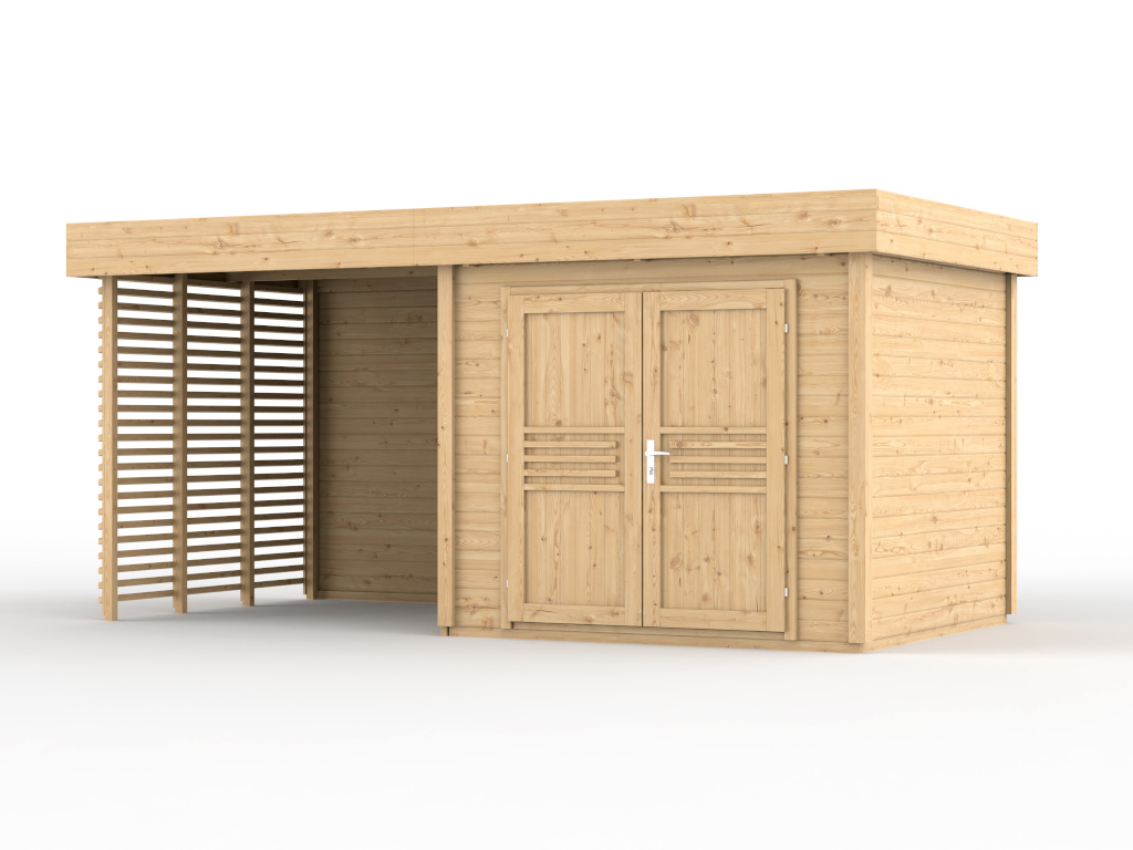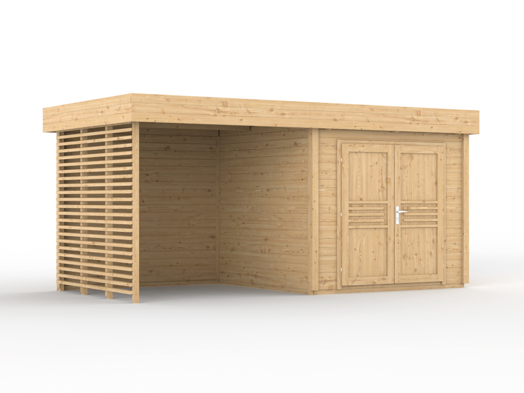 Tuinhuis Livo 2 28 mm onbehandeld met 264 cm aanbouw