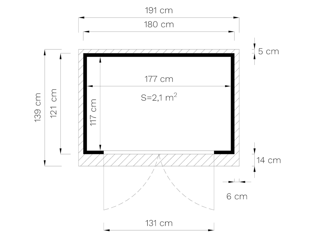 | Inwendige afmeting huis / grootste kamer (B x D cm): | 177 x 117 cm |