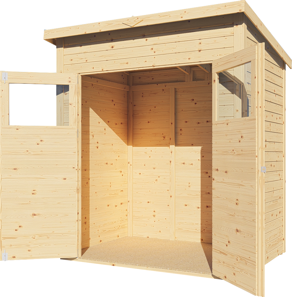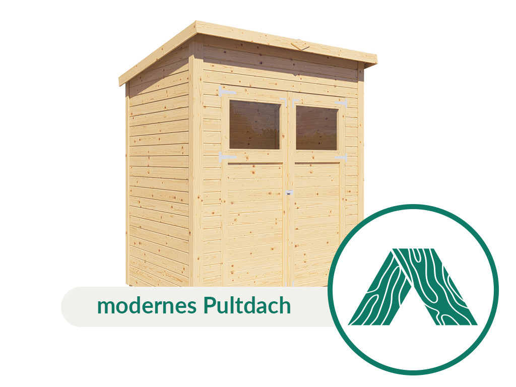 Een modern lessenaarsdak van massief hout met mes-en-groefverbinding geeft dit tuinhuis een stijlvolle, elegante look. Door de enkele, licht hellende dakzijde blijft de bruikbare ruimte binnenin vrijwel volledig behouden en gaat er weinig opbergruimte verloren. Bovendien zorgt de hellingszijde van het lessenaarsdak voor een goede afvoer van regenwater en hoef je slechts één dakgoot te monteren.