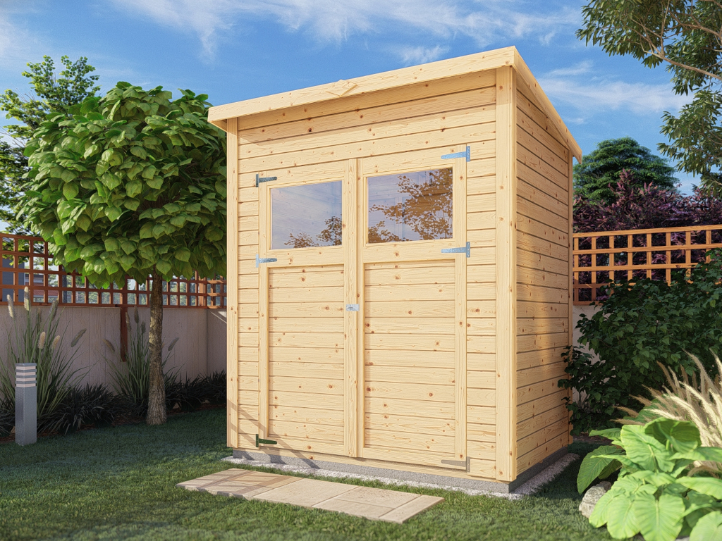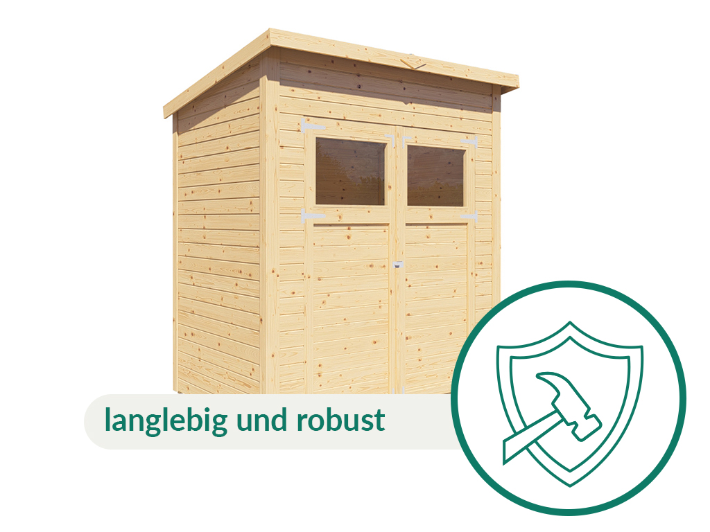 Een modern lessenaarsdak van massief hout met mes-en-groefverbinding geeft dit tuinhuis een stijlvolle, elegante look. Door de enkele, licht hellende dakzijde blijft de bruikbare ruimte binnenin vrijwel volledig behouden en gaat er weinig opbergruimte verloren. Bovendien zorgt de hellingszijde van het lessenaarsdak voor een goede afvoer van regenwater en hoef je slechts één dakgoot te monteren.